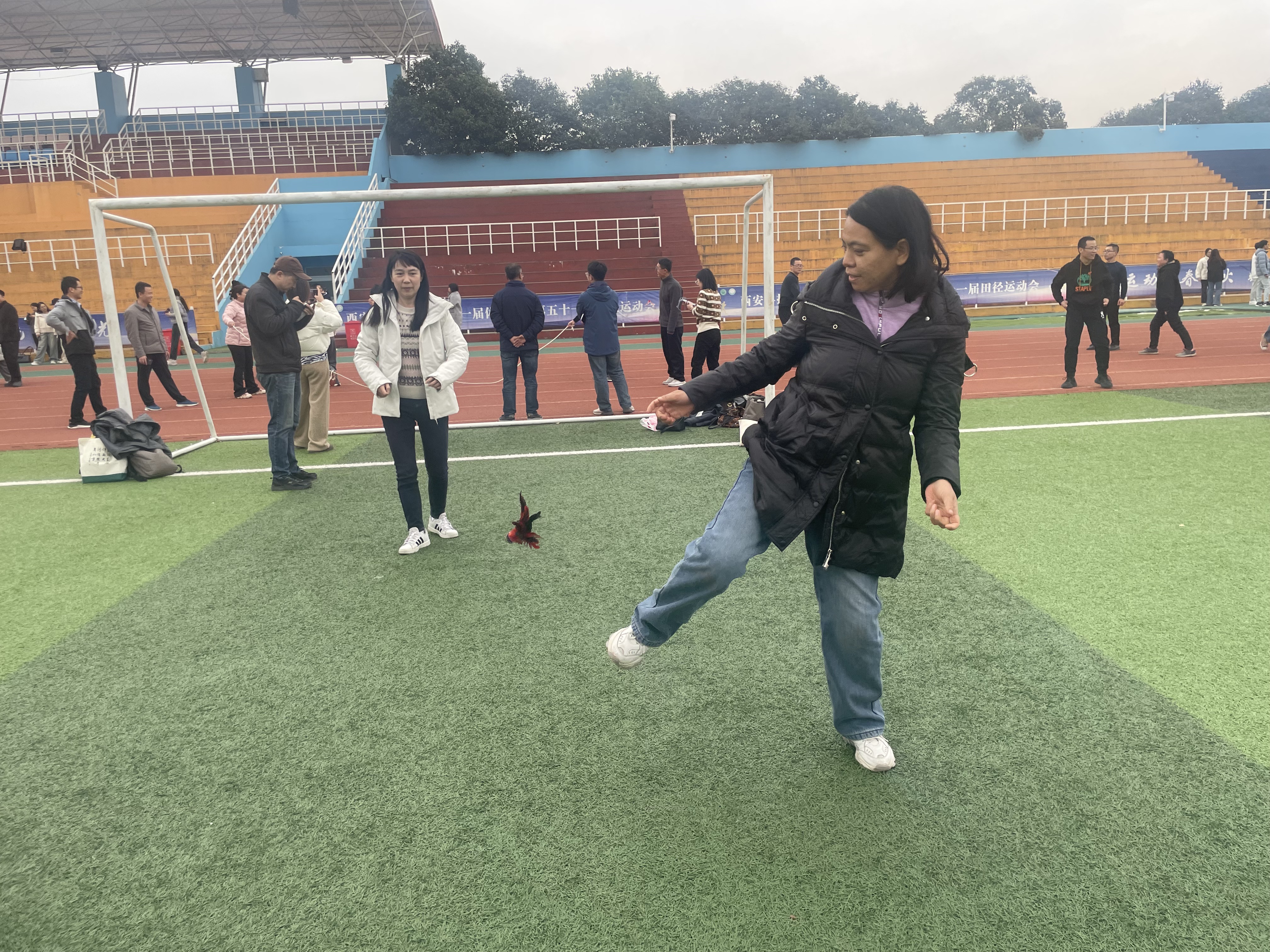 活动现场参赛选手们一个个灵活机敏,你追我赶、相互配合,毽子像一只只蝴蝶在飞舞或轻盈旋转或高高飞起,活动现场气氛热烈、欢呼声不断。此次踢毽子比赛不仅丰富了教职工业余生活,增强身体素质,还增进了大家的友谊与合作。