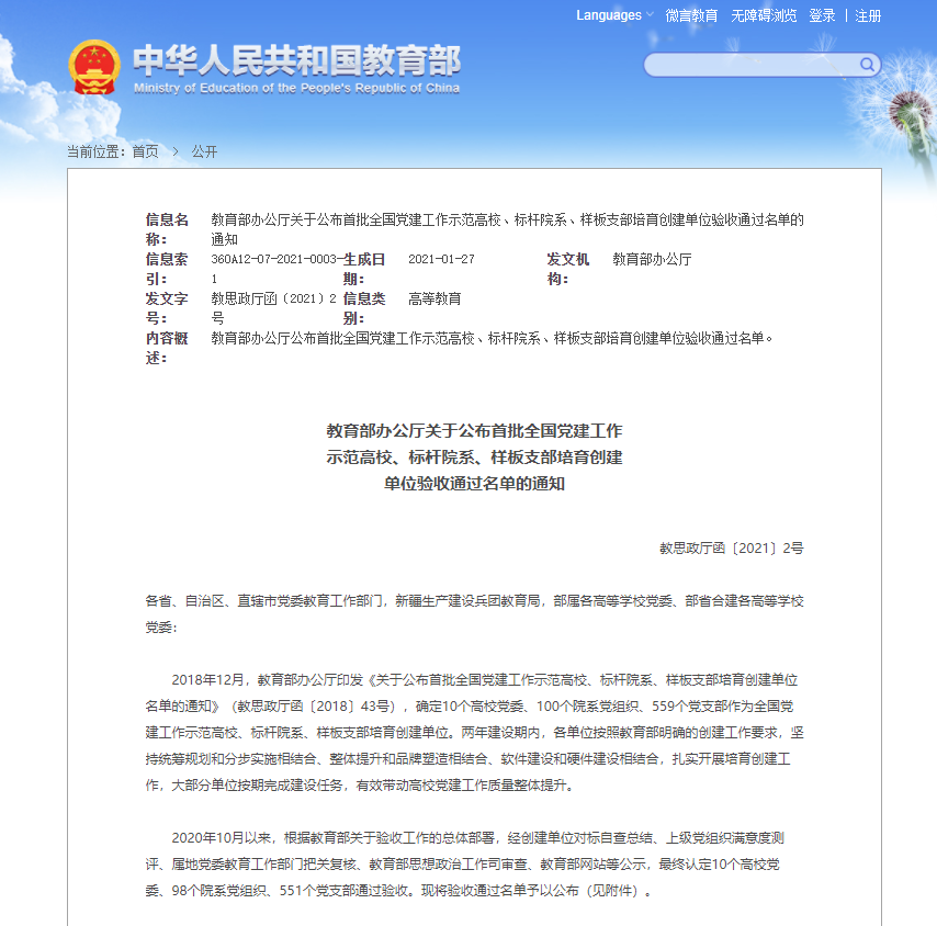 2021年1月26日,首批“全国党建工作样板支部”培育创建单位--best365中国官方网站数学系第一党支部(原理公司教工第一党支部)通过验收。
