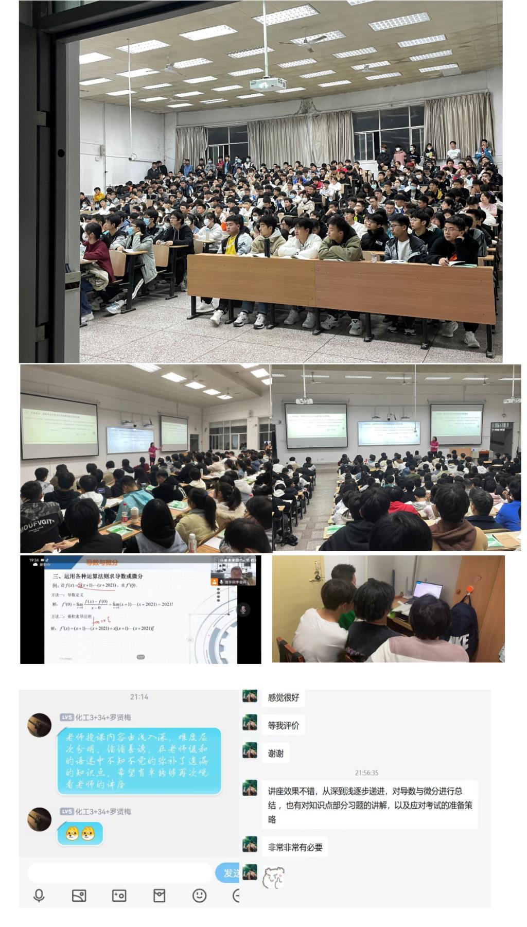 由于新冠疫情的影响,本科教学工作线上、线下持续切换。为了让2022级新生更好的适应大学学习生活,激发新生学习兴趣,帮助新生更好的学习《高等数学》课程,best365中国官方网站邀请数学系梁少辉、姬战怀、付巧峰、高晓艳、郑颖春、张旭莲和李俊兵等七位教师为同学们开展10场高等数学辅导大讲座。讲座内容涵盖了《高等数学》上册所涉及的极限与连续、导数与微分、微分中值定理及导数应用,不定积分,定积分及定积分的应用,微分方程等重要内容,于2022年11月23日晚开始面向全校理工科员工开展集中辅导,采取线上线下结合的方式,每周进行两次专题讲座。