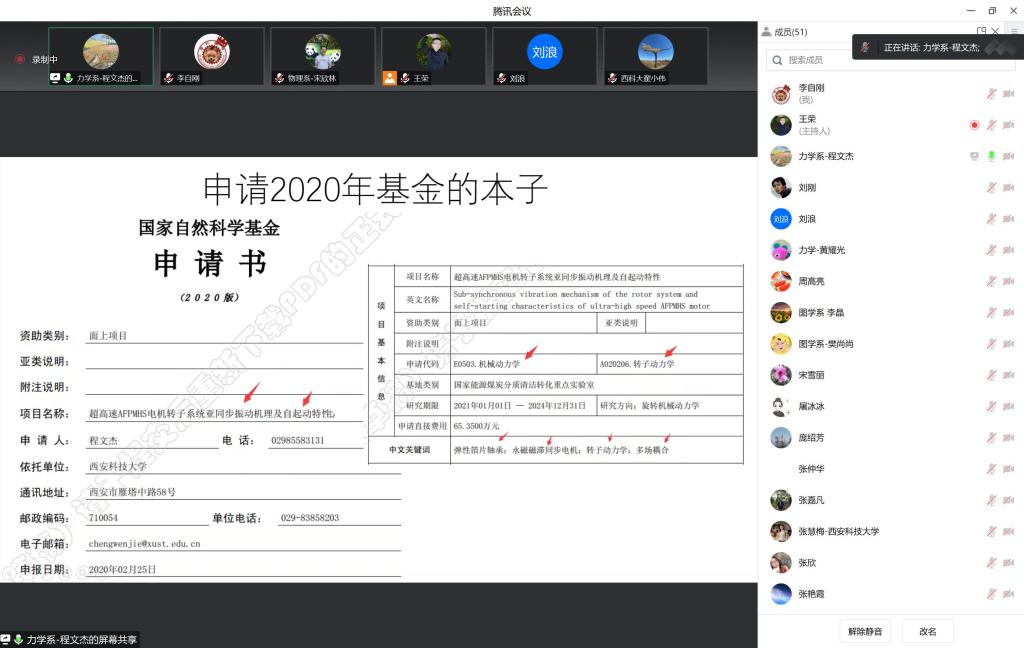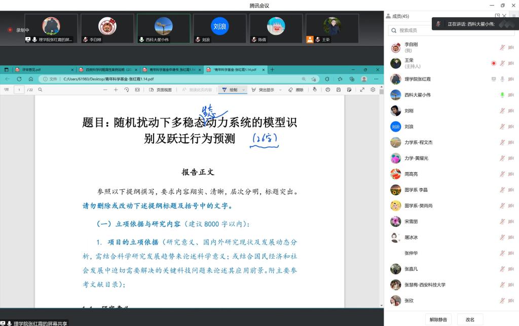 2023年1月14日,best365中国官方网站通过在线会议举行2023年国家自然科学基金项目评审会。会议邀请了公司科技处翟小伟处长,能源公司教授、国家优青项目获得者刘浪教授,为best365中国官方网站教师特别是青年教师就基金本子撰写思路,给大家出谋划策。本次评审会旨在通过具体案例诊断分析申报书撰写过程中的共性问题,重点针对科学问题及其属性、创新型及研究价值等方面,通过专家的指导,和公司各位老师一起理清申报课题的主线和具体研究方案,进一步凝练科学问题。会议由副经理李自刚主持,公司经理张仲华、副经理解忧、张慧梅教授、张嘉凡教授以及拟申报基金的教师50余人参加了本次会议。
