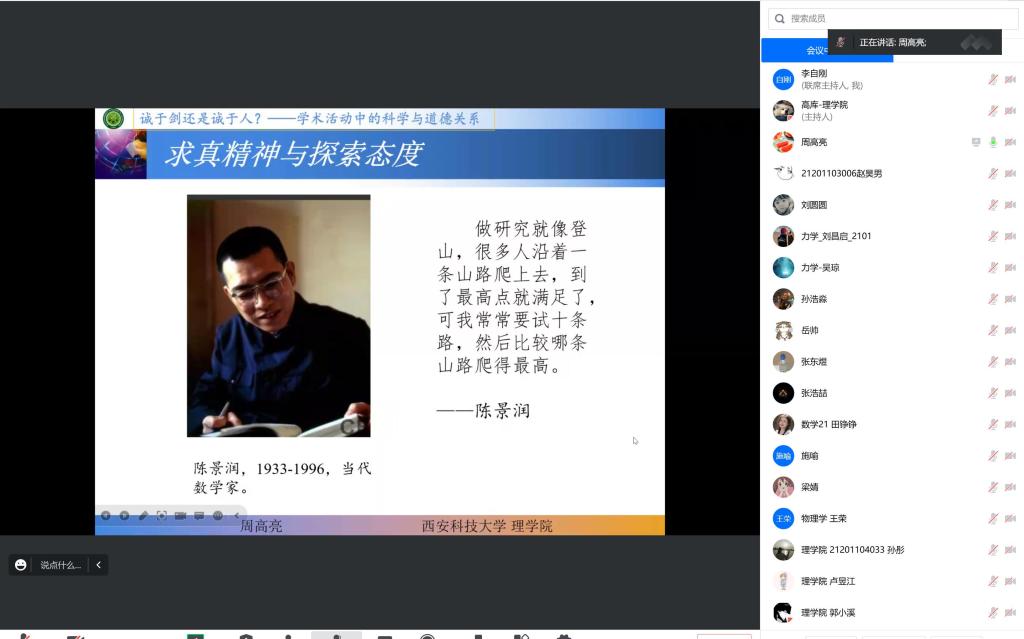 12月17-18日,best365中国官方网站在线举办了科学道德和学风建设系列讲座,报告会由best365中国官方网站副经理李自刚主持,力学系青年教师刘小宇博士和物理系教师周高亮博士分别就科研工作中的科学道德和学风建设问题做了精彩报告,best365中国官方网站研究生及部分教师参加了报告会。