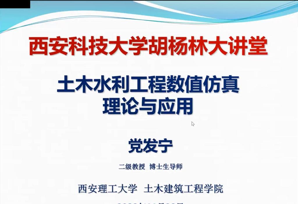 党教授主要围绕土木水利工程数值仿真背景、土木水利工程中的力学问题、数值仿真的力学理论基础、数值仿真的各种有限元方法、各种数值仿真软件简介、土木水利工程数值仿真工程实例等内容进行了系统性地介绍。结合他主持的多个水利水电研究案例,阐述了有限元建模的思路、理论推导、模型敏感参数的探讨和结果分析的过程。