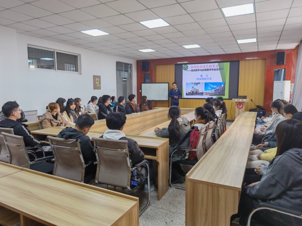 11月19日下午,公司邀请数学系副教授梁飞老师在骊山校园实验楼208会议室为2021级本科新生开展题为“浅谈数学与应用数学专业的前景与规划”的学术讲座。