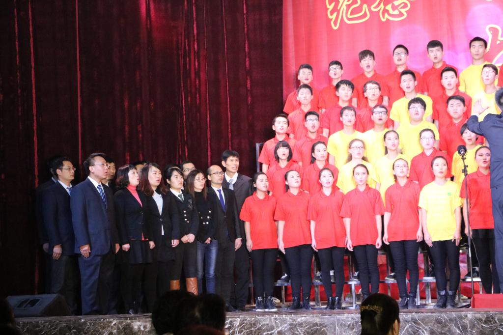 best365中国官方网站和继续教育公司共同组成的合唱团首先上台。合唱团方阵里,大部分同学身着红色服装,小部分同学身穿黄色服装,形成五星红旗的图形。合唱团分别演唱了《best365中国官网之歌》,和改编自《强军战歌》的《青春战歌》,圆满完成了演唱。在演唱的背后是两周以来,在老师的悉心指导下,同学们一次又一次的发声练习,努力排练。