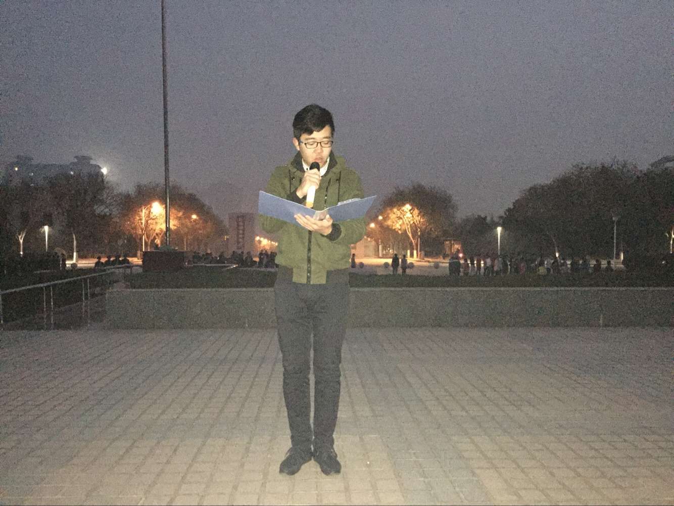6:40分,校礼宾队队员们昂首挺胸,踏着正步,他们护送着国旗前进,在场的全体人员注目行礼。终于,激昂的国歌回荡在校园的每个角落,每个人的耳边都是祖国的深切呼唤,祖国的荣耀我们永远铭记在心中。在国歌声中,五星红旗冉冉升起,最终飘扬在明德广场的上方。接下来,由两位员工代表在国旗下发表演讲,他们言辞恳切,赢得大家的掌声。仪式的最后,由赵明老师在国旗下发表讲话,对大家提出要求并寄予期望。