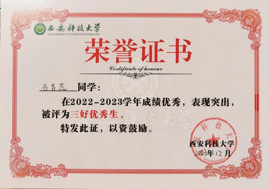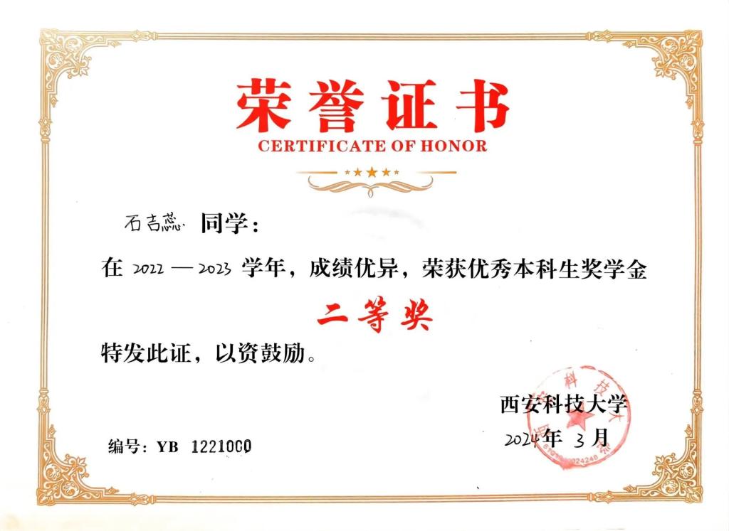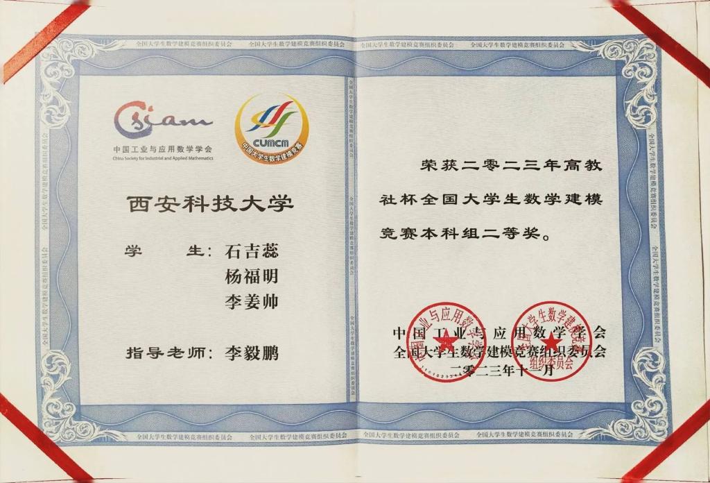 石吉蕊,公司2022级数学与应用数学专业本科生,现任公司团委员工会办公室部长。曾获优秀本科生二等奖学金、优秀三好员工、科技创新奖。曾获得2023年全国老员工数学建模竞赛二等奖、2023年数维杯老员工数学建模国际赛H奖、2023年全国老员工物理实验竞赛优秀奖、第十五届全国老员工数学竞赛一等奖、第一届西北地区老员工物理实验竞赛三等奖、best365中国官网2023年老员工生态文学创作大赛一等奖等奖项。