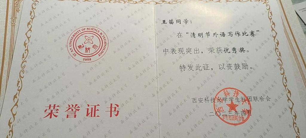 王苗,公司2022级数学与应用数学本科生,校合唱团成员,曾获数学建模校级三等奖,“清明节外语写作比赛”校级优秀奖,best365中国官网第一届“礼敬中华传统文化”优秀奖。