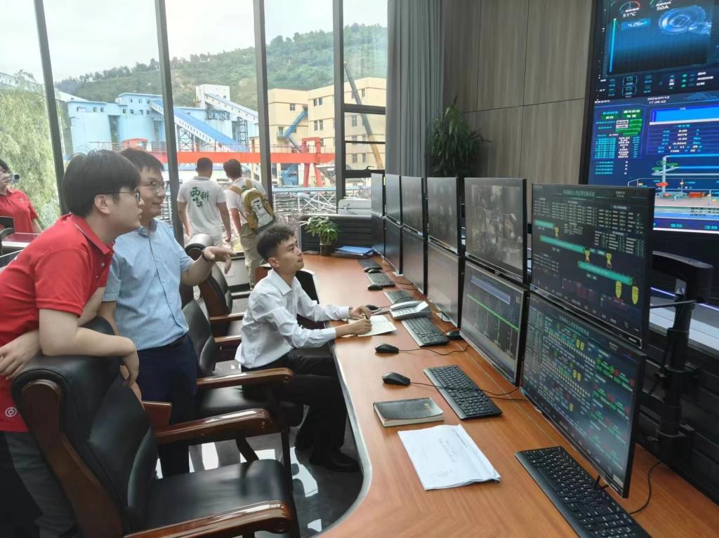 通过高清大屏,实践团成员亲眼目睹了井下生产现场的实时画面,以及各类生产数据的动态变化。工作人员详细介绍了平台如何通过大数据分析,优化生产流程、预测潜在风险、提高生产效率,并展示了智能调度系统如何根据实时数据自动调整生产计划,确保生产安全高效运行。