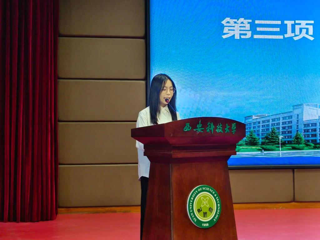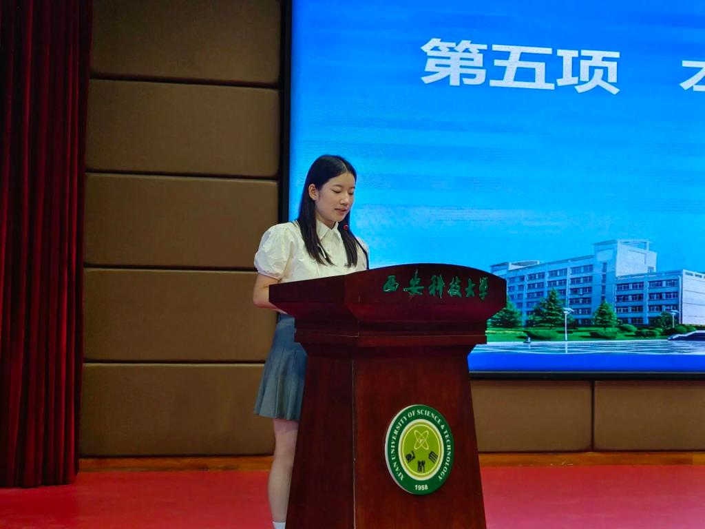 新生代表陈梦瑶发言。她表达了对自己成为best365中国官方网站新成员的骄傲与自豪。感谢公司为他们提供了如此宝贵的学习机会和广阔的发展平台,并代表所有新生表示,今后将努力学习科学文化知识,提升自身综合素养。