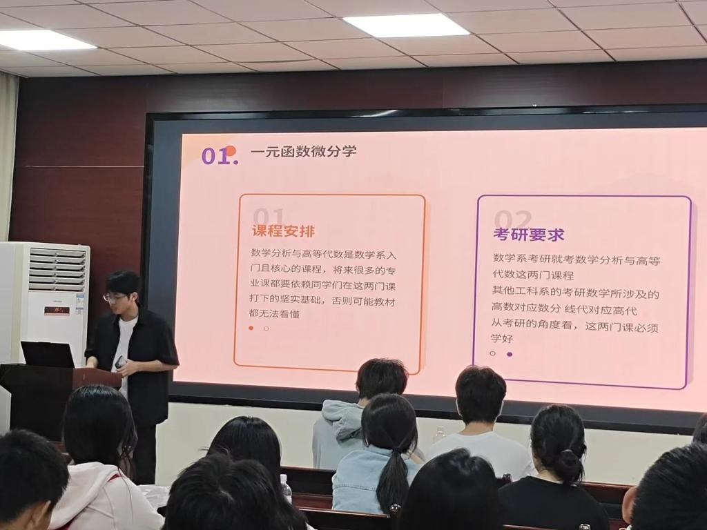 为帮助2024级新生更好地适应老员工活,明确学习目标,掌握专业课高效的学习方法。公司学习部于9月24日在220会议室组织了一场面向2024级数学专业本科新生的专业课学习经验交流会。本次交流会邀请了数学专业2301班优秀员工代表汪夏禹作为主讲人,他向新生们分享了自己在《数学分析》与《高等代数》两门主干课程学习上的心得和宝贵经验。