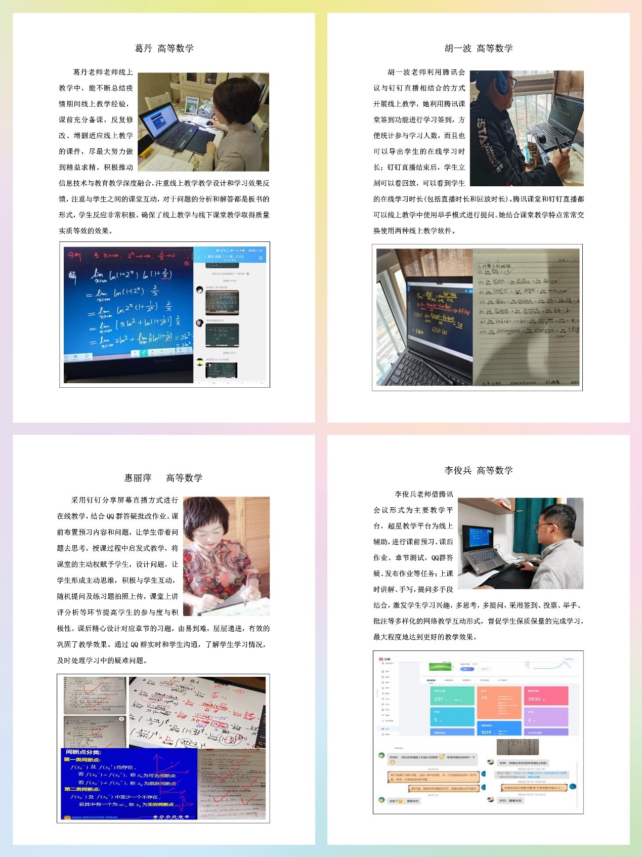 面对疫情,数学系第一党支部全体教师沉着应对,按照教学计划,迅速调整教学方式,坚持以员工为中心开展丰富多样的线上教学活动,员工自主讲解、教学视频展示、专题讨论相结合,让员工参与教学,沉浸于课程学习,在线教学工作开展顺利。