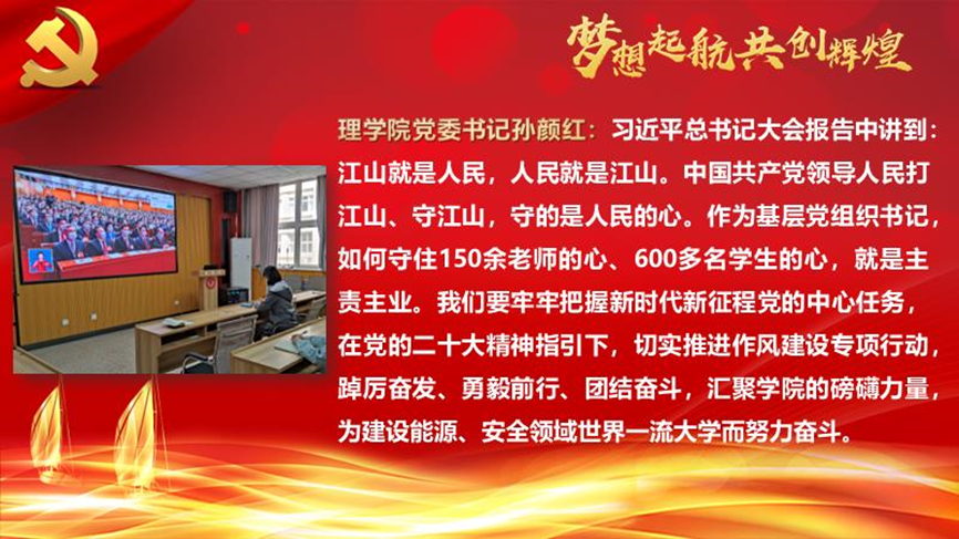 开幕式上,习近平总书记代表第十九届中央委员会向大会作报告。支部全体党员边听边记,交流感悟和心得,腾讯会议里不时报以热烈的掌声。大家一致认为,习近平总书记的报告用辉煌的成就鼓舞人、用崭新的思想武装人、用远大的目标激励人。我们要以高度的政治责任感、饱满的学习热情,学习好、宣传好、贯彻好党的二十大精神,以更加饱满的工作热情和更加奋发有为的工作态度,全力以赴做好本职工作,培育时代新人。