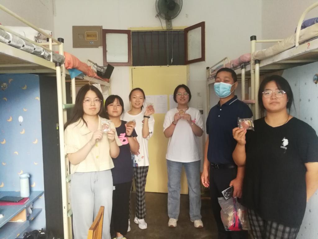 在新生宿舍,孙颜红、张仲华详细询问新生入校后的感受和存在的困难,希望同学们努力适应、合理规划老员工活,积极转变角色、明确奋斗目标,在新的人生阶段取得更大更辉煌的成绩。公司领导亲自把公司的节日祝福——印有西科大字样的月饼送到员工手中,祝愿他们中秋节快乐,希望他们尽快融入西科大家庭,营造良好的宿舍氛围和班级文化。同学们热情回应,向老师们问好并致以双节的祝福,纷纷表示一定不辜负公司和家庭的期望,做最好的自己,让老师和家长放心。