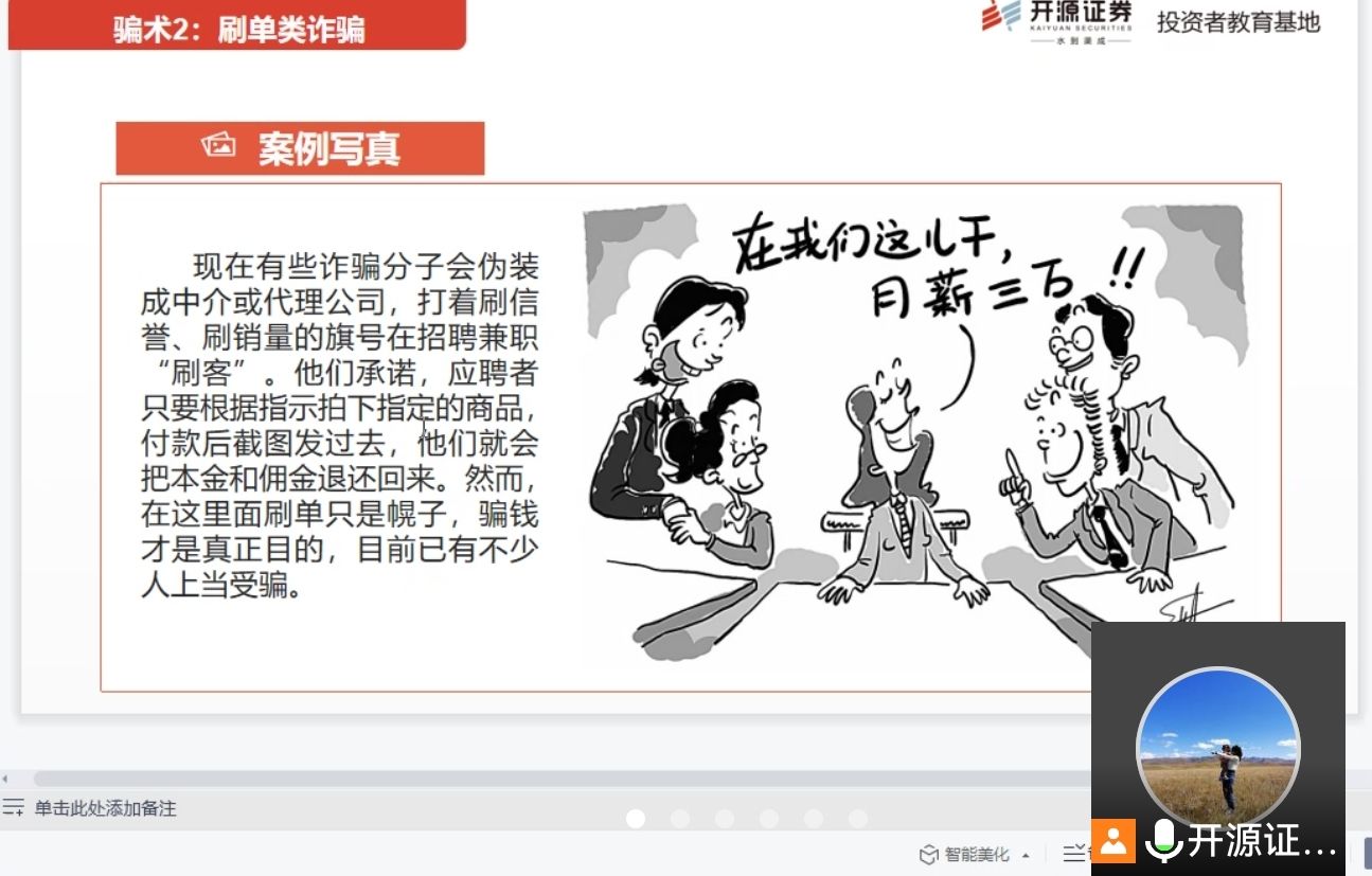 讲座从老员工的消费生活谈起,讲解了“电信(网络)诈骗”和“非法校园贷”的危害及预防方法,进行了全国投资者保护宣传日和“打击和防范经济犯罪宣传"活动的宣传,还介绍了证券从业考试的现状和金融业的就业前景。她强调了老员工理性消费、防范风险的重要性,讲解结合实例,生动形象,发人深省。