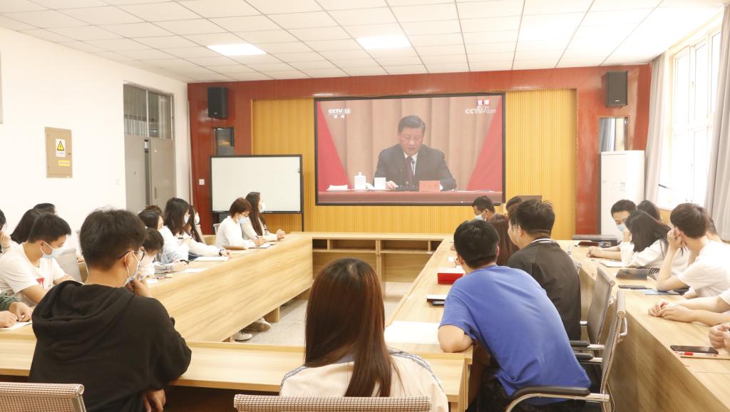 5月10日上午10时,庆祝中国共产主义青年团成立100周年大会在北京人民大会堂隆重举行。中共中央总书记、国家主席、中央军委主席习近平出席大会并发表重要讲话。公司党委组织公司部分师生代表在临潼校区骊山校园实验楼208会议室集中收看庆祝中国共产主义青年团成立100周年大会现场直播,全院各级团学干部和团员青年线上分散收看。