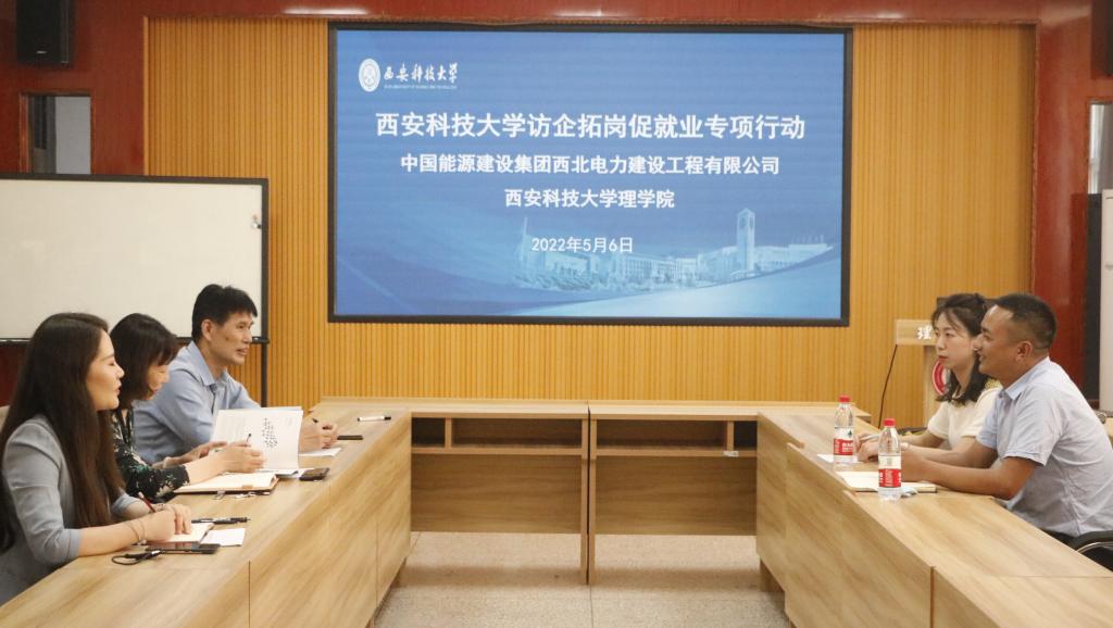 5月6日下午,应我best365中国官方网站邀请,中国能源建设集团西北电力建设工程有限公司市场开发部主任杨帆一行来公司召开专场招聘宣讲会并就访企拓岗促就业专项行动在best365中国官方网站208会议室召开座谈会议。