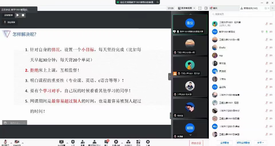 员工党员郭雪仪:分享了自己之前网课学习的经历,希望同学们做好课前预习,上课认真听讲,对数学专业课的学习分享了一些行之有效的学习方法。希望大家在闲暇之余对自己的未来有一个明确的规划。