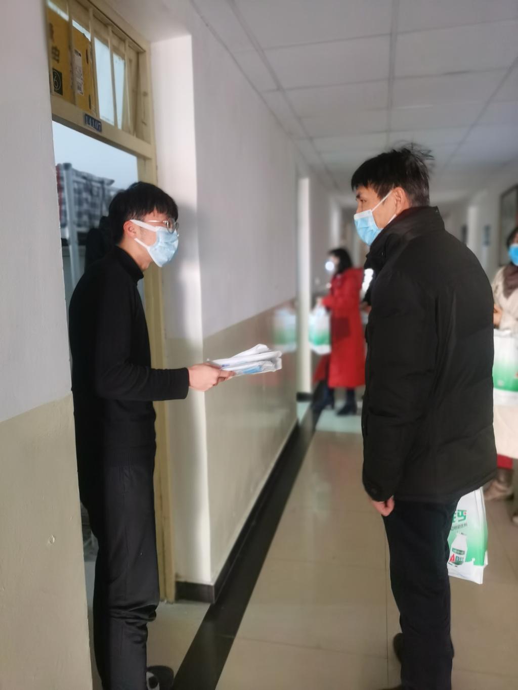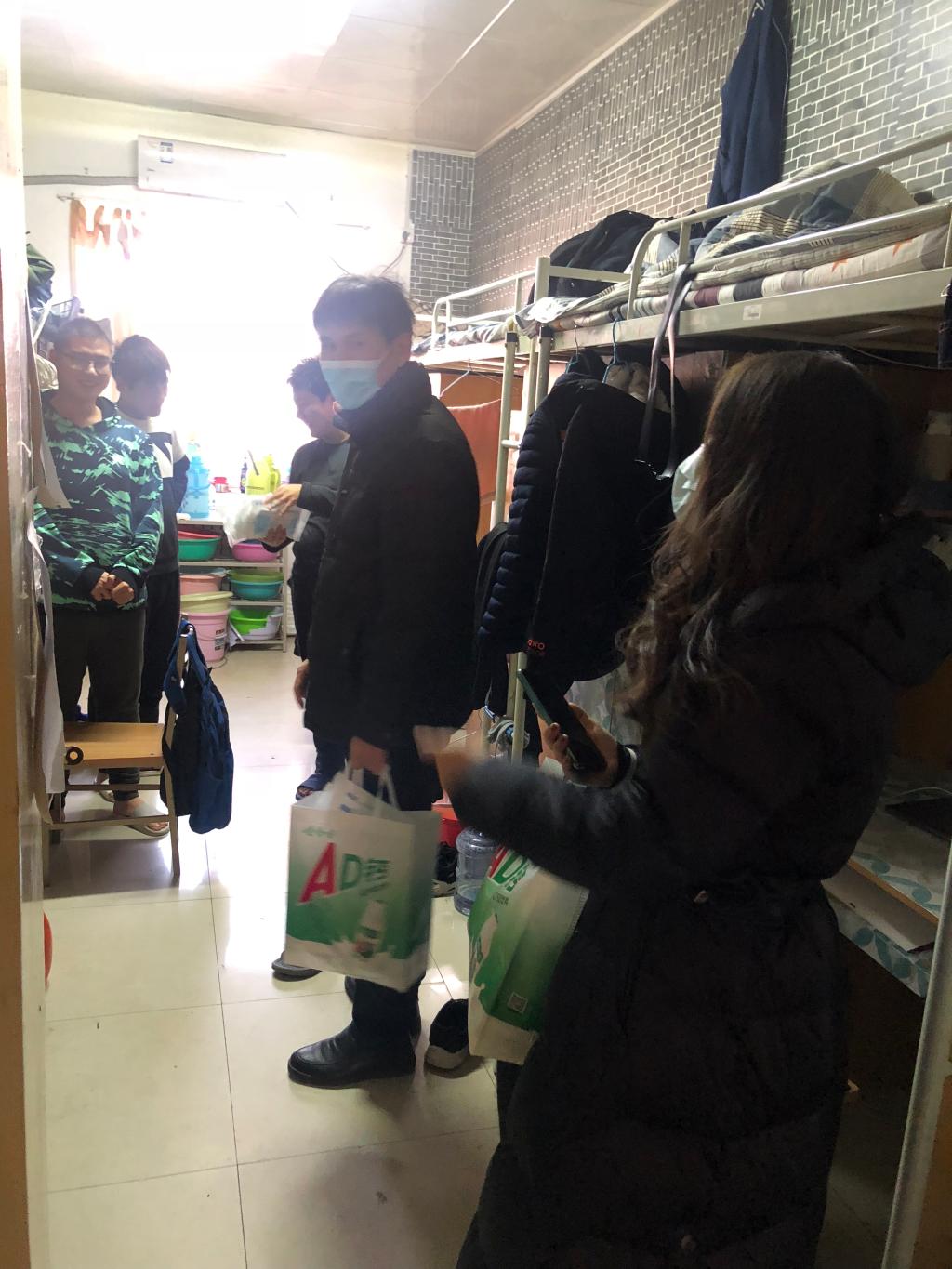 为全面掌握疫情防控期间员工校园学习生活情况,深入了解员工思想动向和实际需求,诚挚表达公司对广大学子的新年慰问。1月1日、1月2日,公司党委书记孙颜红、经理李明、副书记高欣、辅导员侯斌刚、办公室主任白云逐一走访了公司全部员工宿舍,积极解决员工在特殊时期的困难和问题,并为员工们送上口罩和温暖的新年慰问。