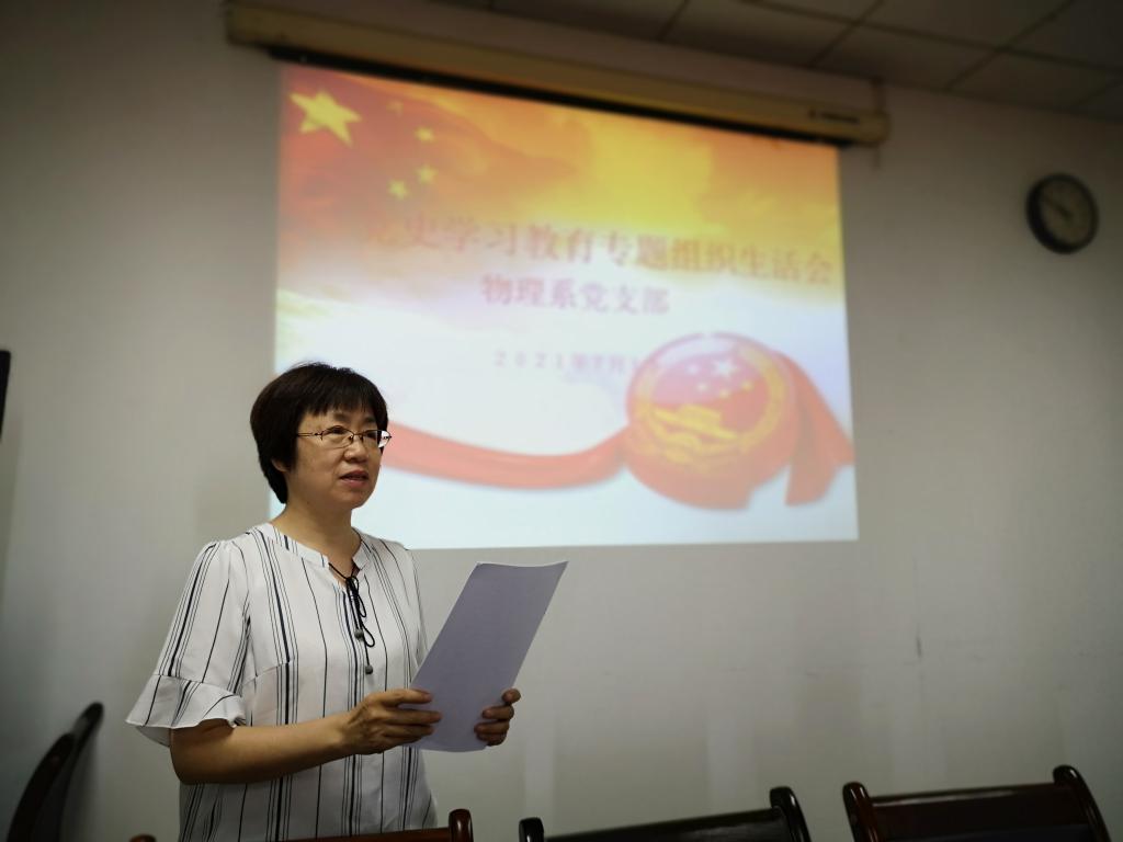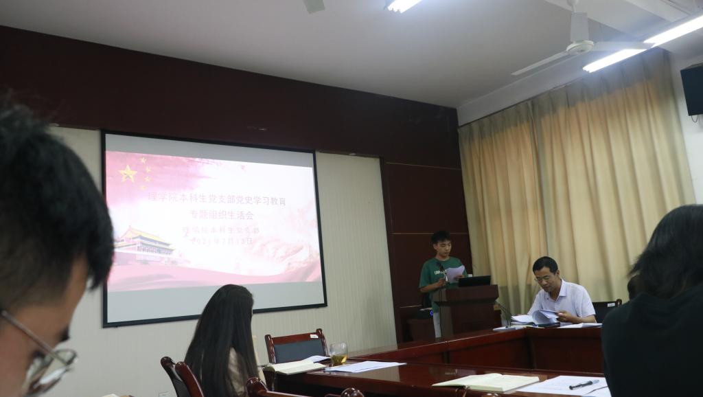 7月13日下午,物理系党支部在雁塔校区1208室组织召开党史学习教育专题组织生活会。公司副经理解忧参加会议。支部书记杨华平代表支委会进行检视剖析,两位支部委员进行了补充。而后,每位与会党员围绕会议主题认真盘点检视,充分开展了批评与自我批评。解忧作点评发言,他指出本次会议准备充分,会前经过了精心组织酝酿,支部委员相互之间,党支部委员和党员之间、党员和党员之间开展了谈心谈话,互相提醒,共同提高,每位党员撰写了发言提纲。批评与自我批评深刻、有辣味,是对思想的一次洗礼,希望广大党员能更进一步提高思想觉悟,多为广老员工和老师办实事。杨华平作了总结发言。会后,杨华平讲授“学习党史、牢记使命、为党育人、为国育才”专题党课。