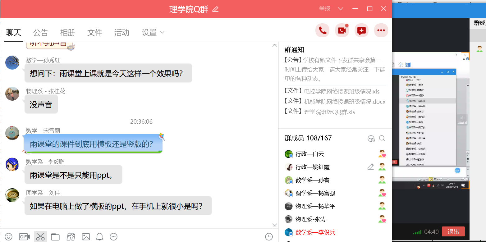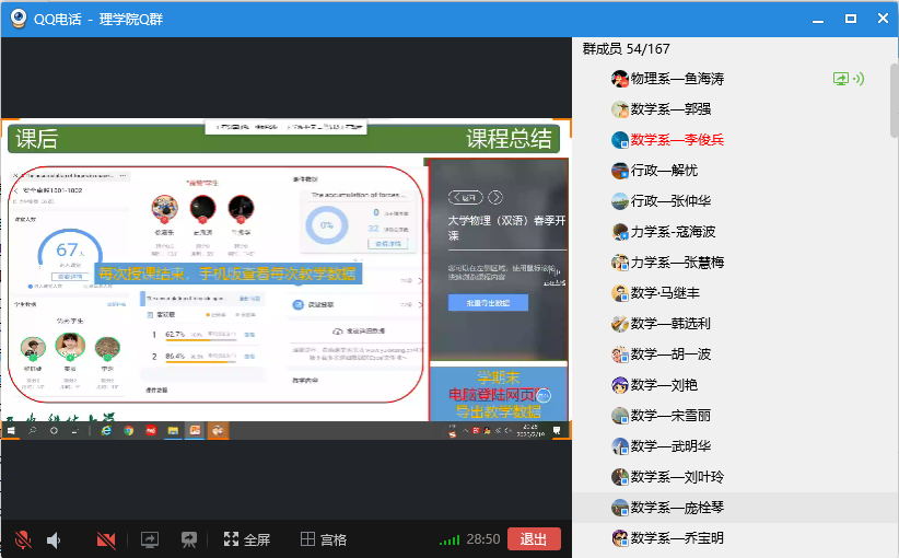 2月19日晚,best365中国官方网站使用“腾讯视频”进行在线教学工作培训,培训会邀请物理系教师、教育部智慧教学之星鱼海涛副教授和数学系刘杰副教授分别以“如何利用学堂云及雨课堂快速部署线上教学”和以“基于超星学习通的混合式教学”为主题,从网络课程模式探讨、雨课堂移动端和PC端的使用、超星学习通的使用及线上教学常见问题等方面进行了细致地讲解,分享了线上教学模式的组织、教学方法和经验。并对大家的提问进行了详细解答。
