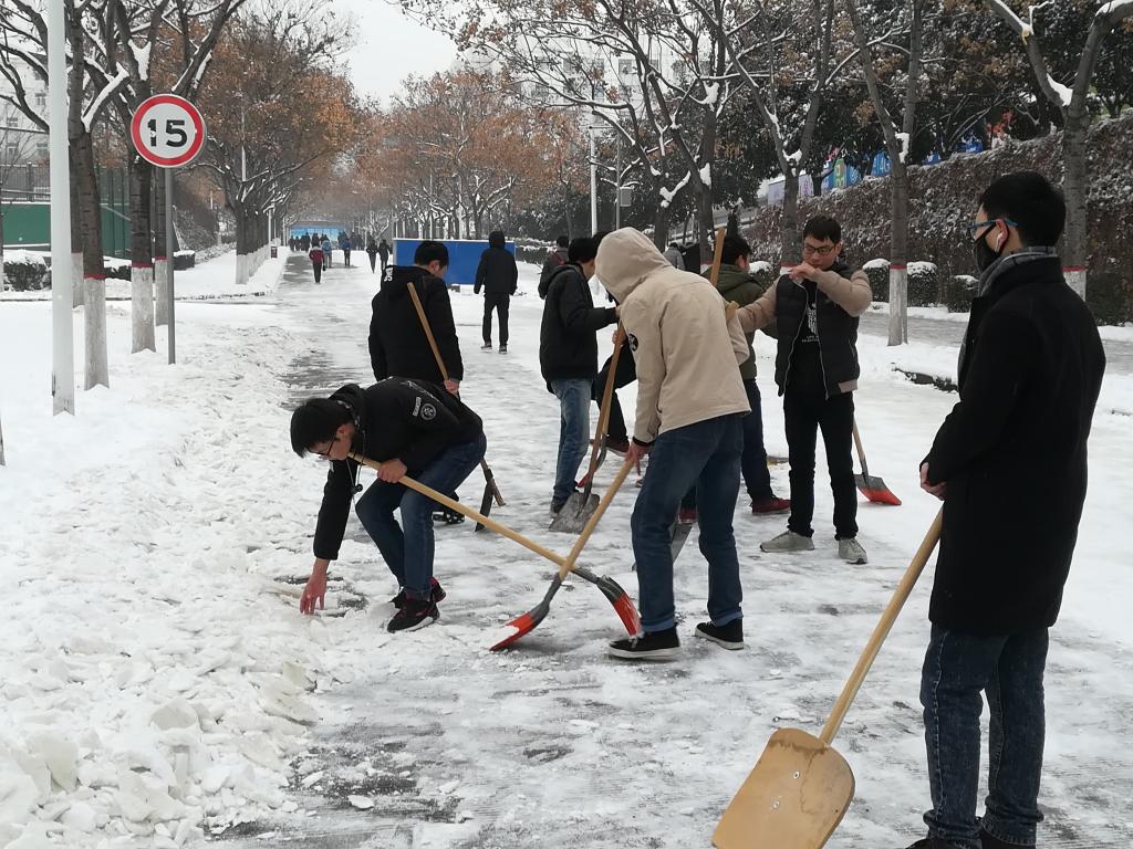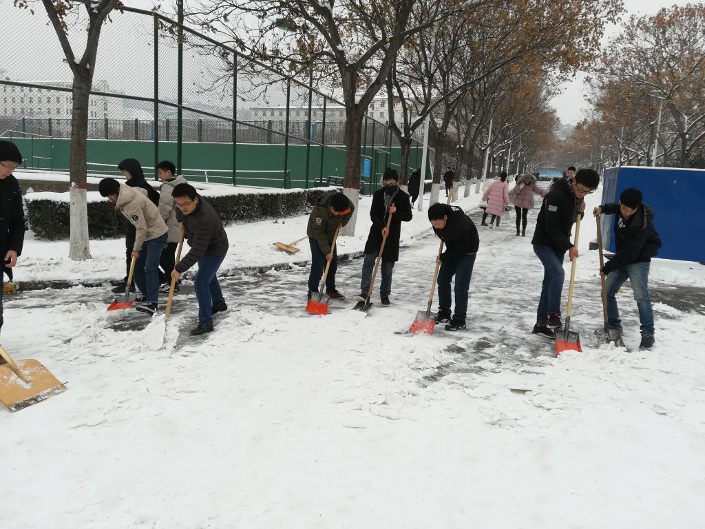 近日,大雪使得校园积雪严重,为保障师生们的出行安全,best365中国官方网站及时组织了清理校园道路积雪的活动。在党委副书记贾哲和分团委书记赵明的带领下,公司各年级同学不畏严寒,互相配合,对公司东环道、体育场东侧干道等多个校园区域的积雪进行了清理,确保了道路的畅通和教生的出行安全。