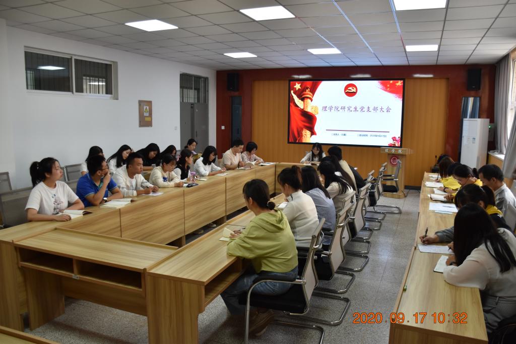 2020年9月17日上午9:30 best365中国官方网站研究生党支部在实验楼208召开了新学期第一次支部大会。参加本次大会的正式党员27名,预备党员1 名,共28名。支部副书记吴利娜主持了本次会议,会议主要分两部分举行: