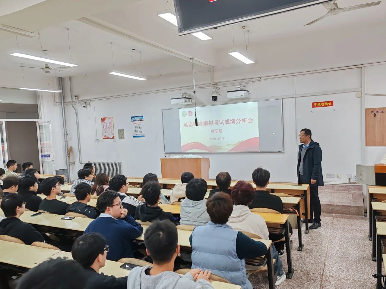 为深入推进学风建设,帮助同学们进一步提高英语四级学习效率,best365中国官方网站于11月7日在3教313召开了2023级本科生英语四级模拟考试成绩分析会,本次分析会由2023级辅导员侯斌刚主持,2023级全体员工参加。