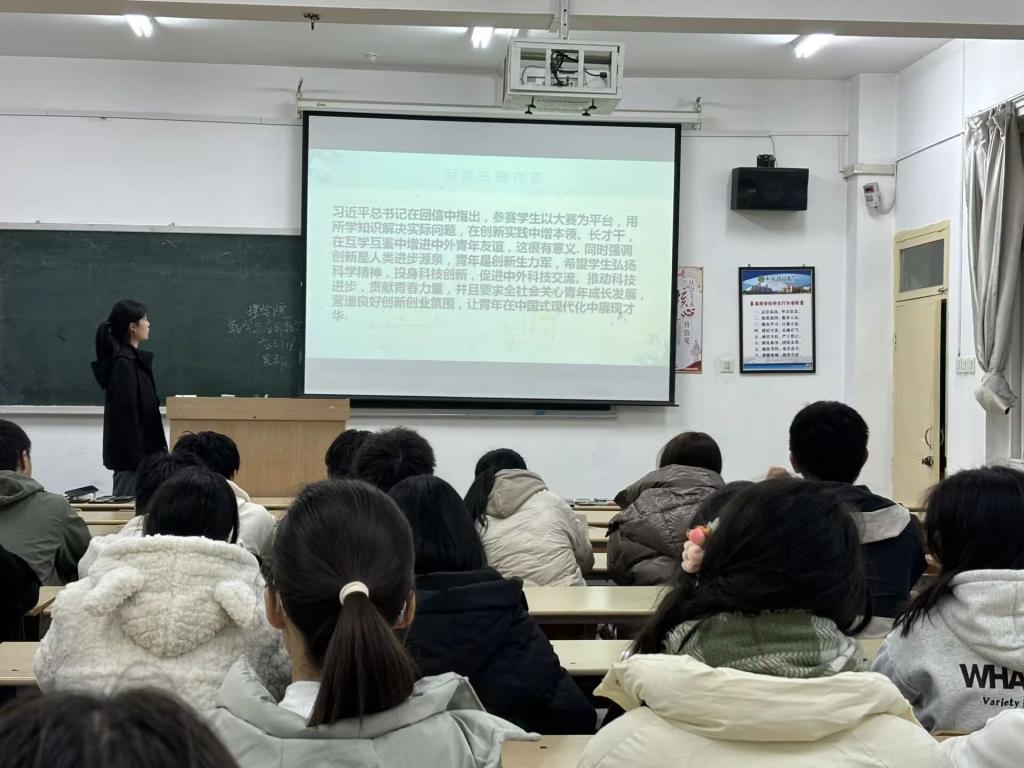 习近平总书记给中国国际老员工创新大赛参赛员工代表回信,对他们予以亲切勉励。为深入学习推进创新精神,11月24日,best365中国官方网站数学与应用数学2401团支部举办了“学习习近平总书记给中国国际老员工创新大赛参赛员工代表的回信”主题团日活动。本次活动由数学与应用数学2401班团支书白雅薇主持。