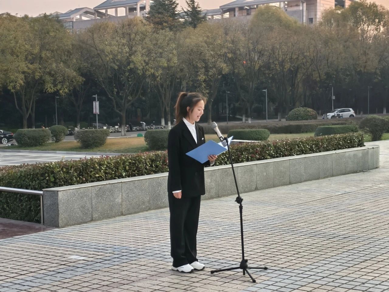 马克思主义公司李丹阳、谢鹏昊等12位同学朗诵诗歌《大写的中国》。他们用文字勾勒出一幅幅生动的画面,让师生们仿佛置身于祖国的怀抱之中,感受到了那份深深的自豪和骄傲。