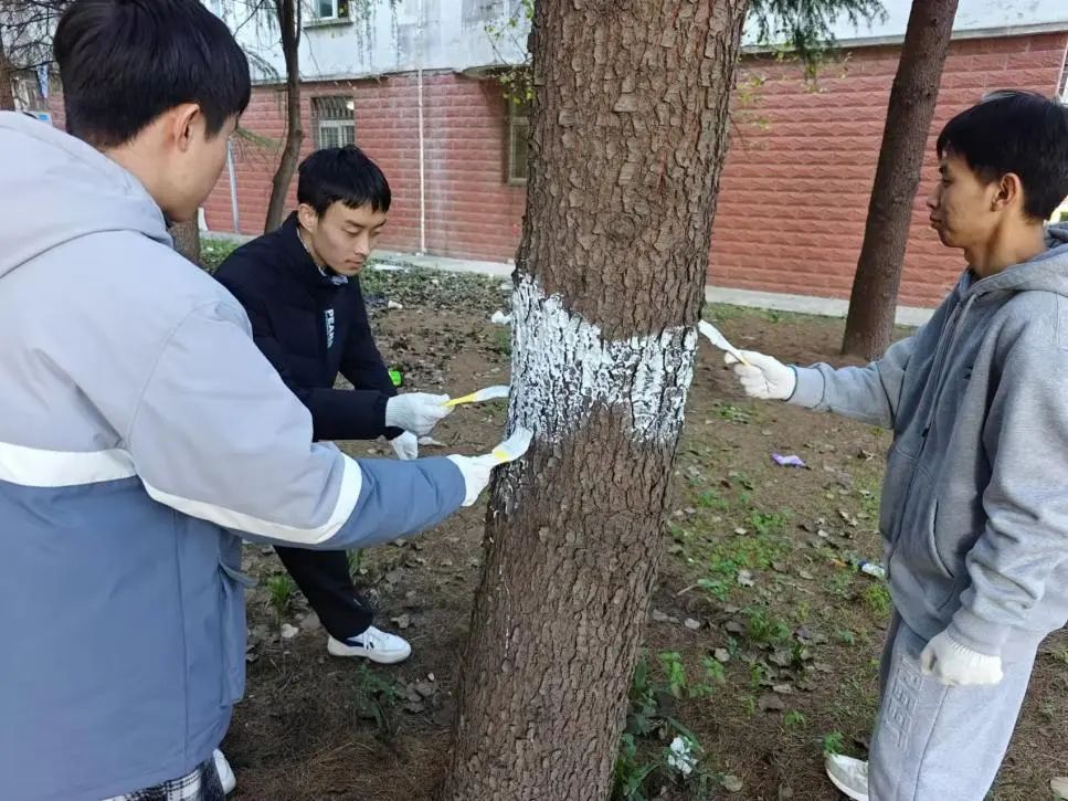 best365中国官方网站师生首先来到力学77级团队纪念林。在这片纪念林中有41棵落叶松,每一棵树木都承载着力学系前辈的辛勤付出与辉煌成就。同学们拿起刷子,为树木涂上洁白的防护层,不仅是为了保护它们免受病虫害的侵袭,更是对前辈们无私奉献精神的致敬与传承。