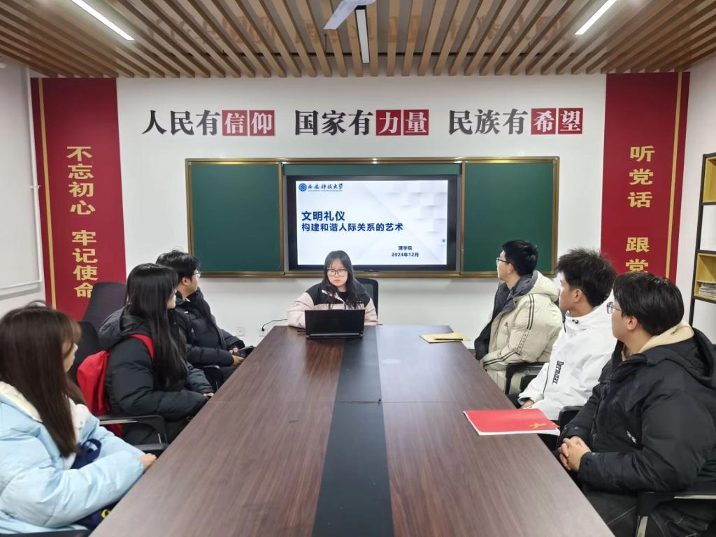 为提升老员工对文明礼仪重要性的认知,帮助同学们掌握在不同场景下践行文明礼仪的技巧,从而促进和谐人际关系的构建,营造文明、友善、互助的社交氛围,12月10日,best365中国官方网站于“一站式”员工社区召开了文明礼仪主题班会,本次班会由2024级辅导员薛一丹主持,2024级各班班长、团支书和学习委员参加。
