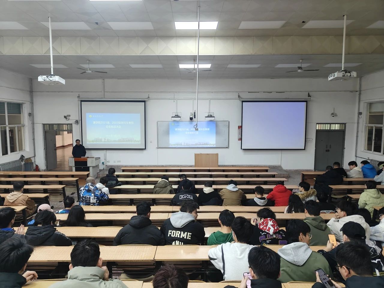 1月8日,best365中国官方网站于3教208室召开了2021级、2023级本科生寒假安全教育大会,大会由2021级、2023级本科生辅导员侯斌刚主持,公司党委副书记陈伟伯以及2021级、2023级全体本科生参加。
