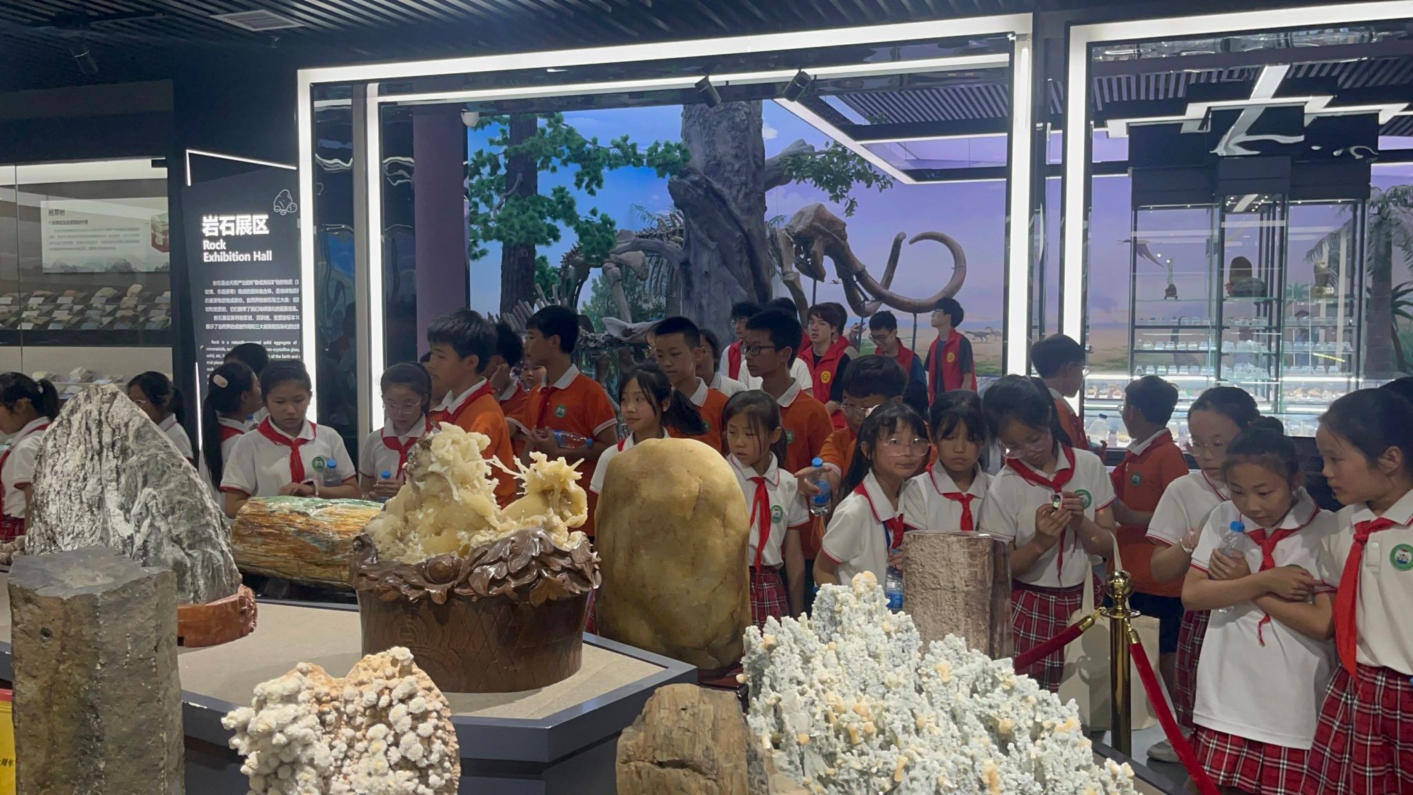 5月24日至31日是第二十五个全国科技活动周。在六一国际儿童节前夕,best365中国官方网站与西泉坡底小学携手,于5月27日举办了“我的六一在大学”科技进校园活动。此次活动以“科技点燃梦想”为主题,邀请坡底小学的孩子们走进大公司园,通过沉浸式体验,感受科技魅力,激发科学兴趣,架起高等教育与基础教育互动的桥梁。孩子们首先走进了充满奥秘的地质博物馆。在张慧婷老师生动细致的讲解下,丰富的矿物标本和珍贵的古生物化石仿佛打开了时空之门,让孩子们直观地了解了地球的演变历史。璀璨的矿石、古老的化石,无不展现着大自然的鬼斧神工,也悄然在孩子们心中播下了探索地球科学的种子