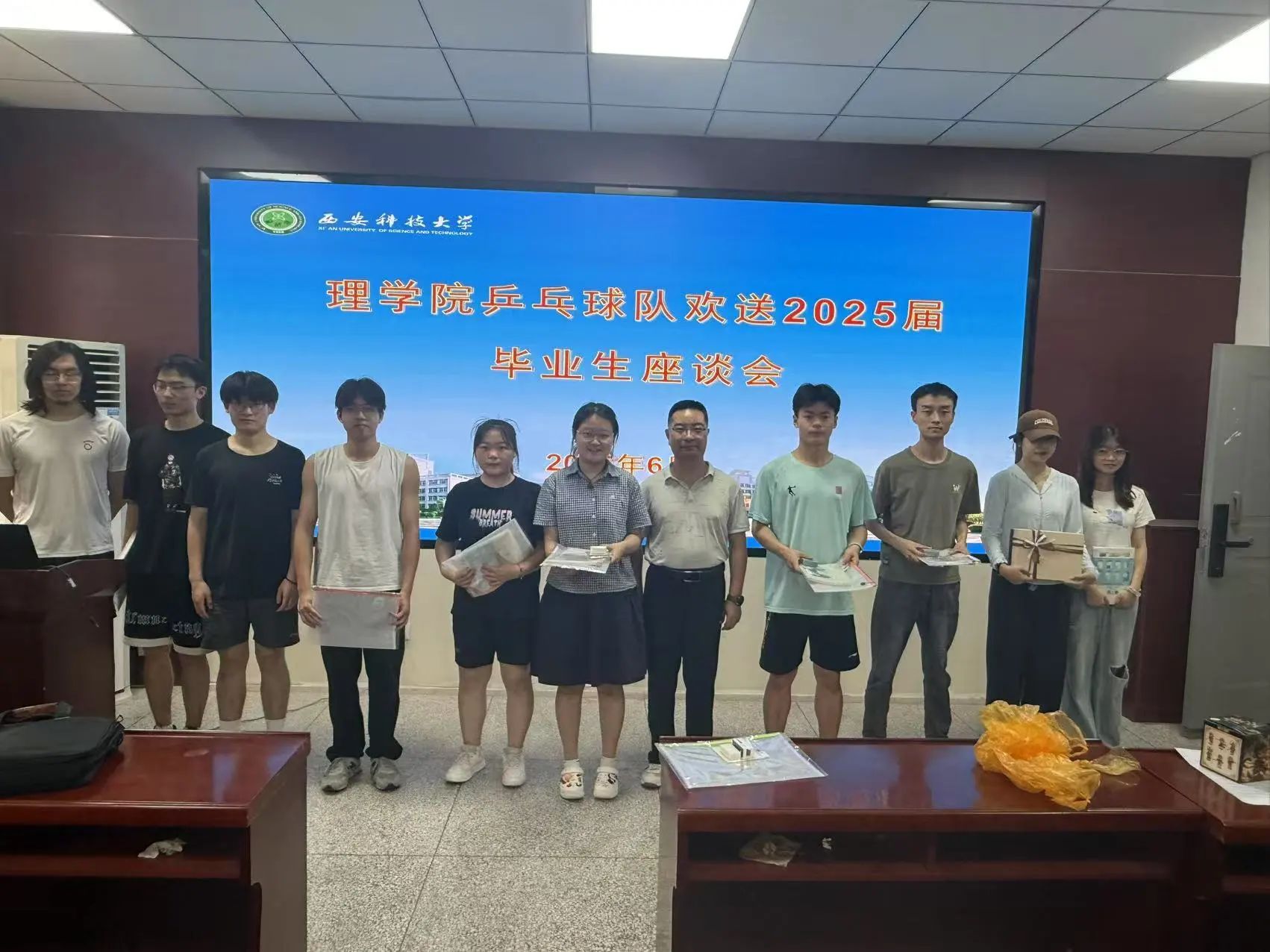 6月22日,best365中国官方网站在骊山校园4号楼三楼活动室举办 “欢送2025届毕业生乒乓球友谊赛”,以球为媒欢送毕业生,搭建师生情感交流桥梁。公司党委副书记陈伟伯、大四毕业生代表及公司乒乓球队成员齐聚赛场,在拼搏与欢笑中留下难忘毕业记忆。