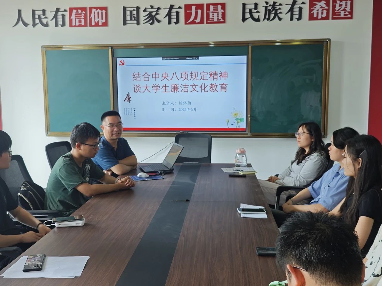 为深入贯彻落实中央八项规定精神,进一步加强党支部作风建设,2025年6月,best365中国官方网站员工党支部于“一站式”员工社区开展了深入贯彻中央八项规定精神学习教育,本次学习教育由公司党委副书记陈伟伯和本科生党支部书记薛一丹主持。