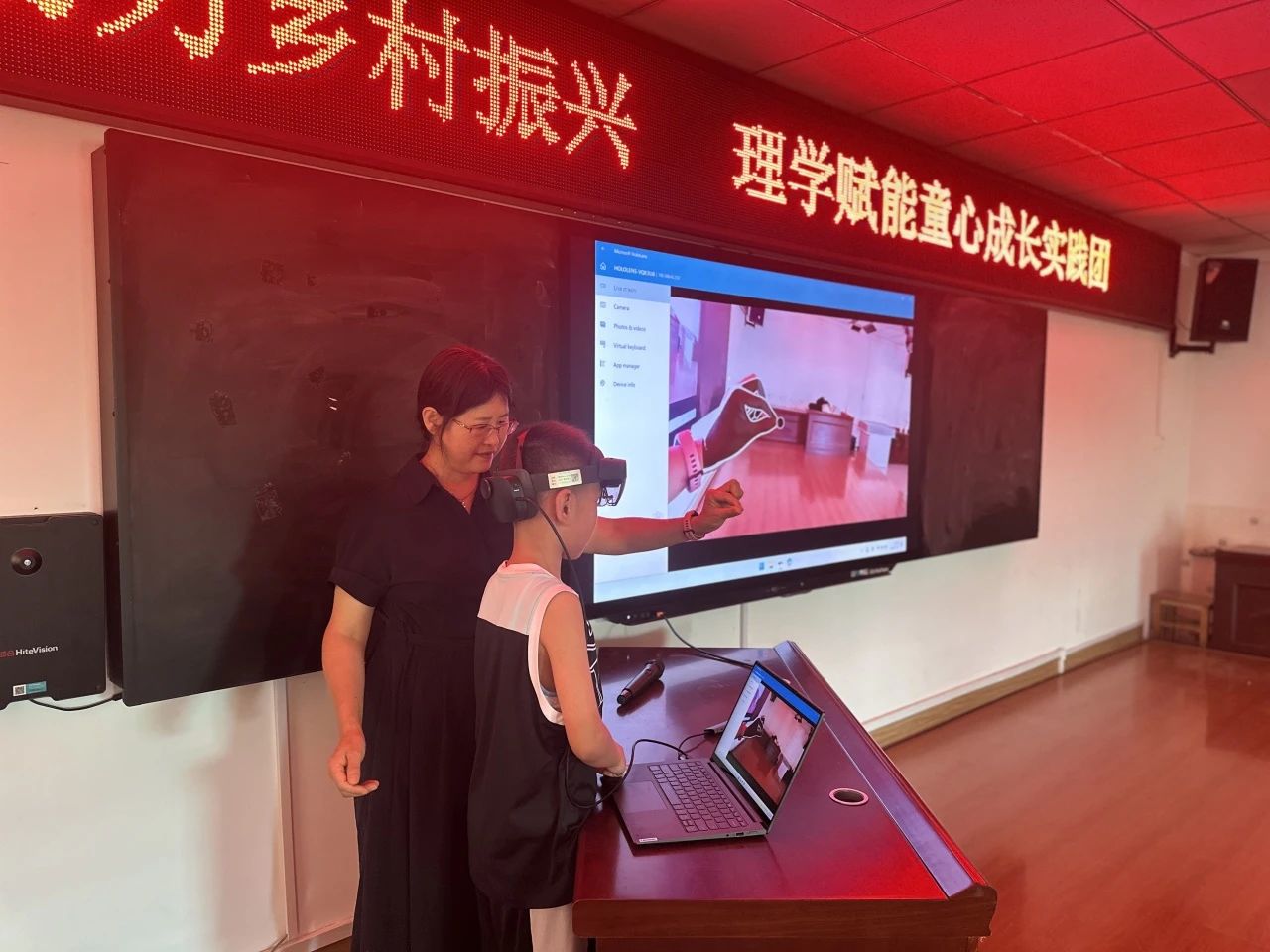 刘佳老师进行了MR技术讲解及现场展示。MR(混合现实)技术作为当下前沿科技,对于乡村儿童来说充满了神秘感。刘佳老师用通俗易懂的语言,深入浅出地介绍了MR技术的原理、应用领域以及发展前景,让孩子们对这一科技有了初步的认识。