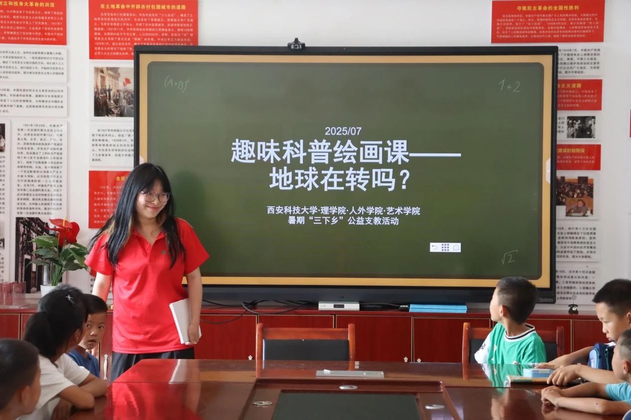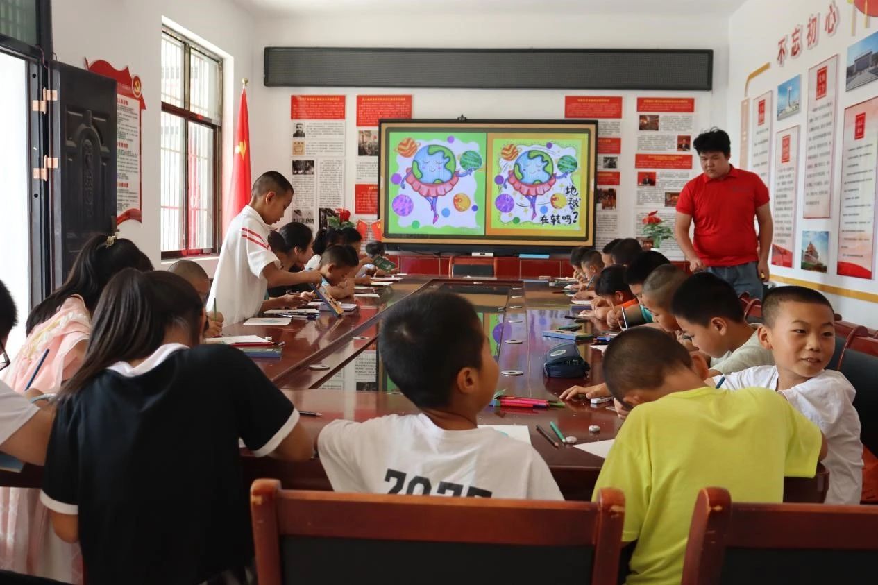 实践团成员杨祎丹以“保护地球”为主题,讲解环境保护对推进生态文明建设的重要作用,通过儿童画创作指导留守儿童在绘画中领悟生态文化,增强共建美丽中国的责任感。