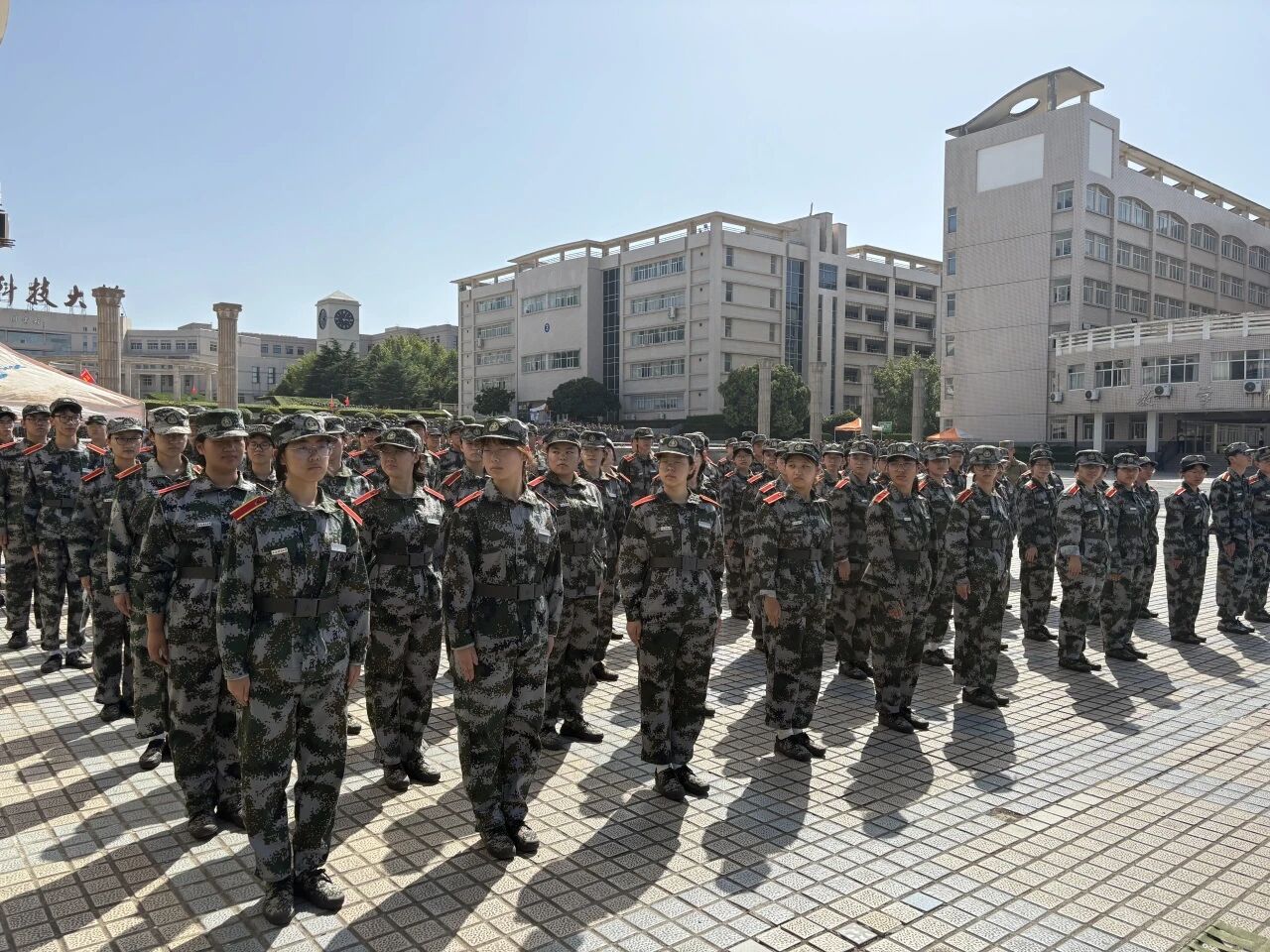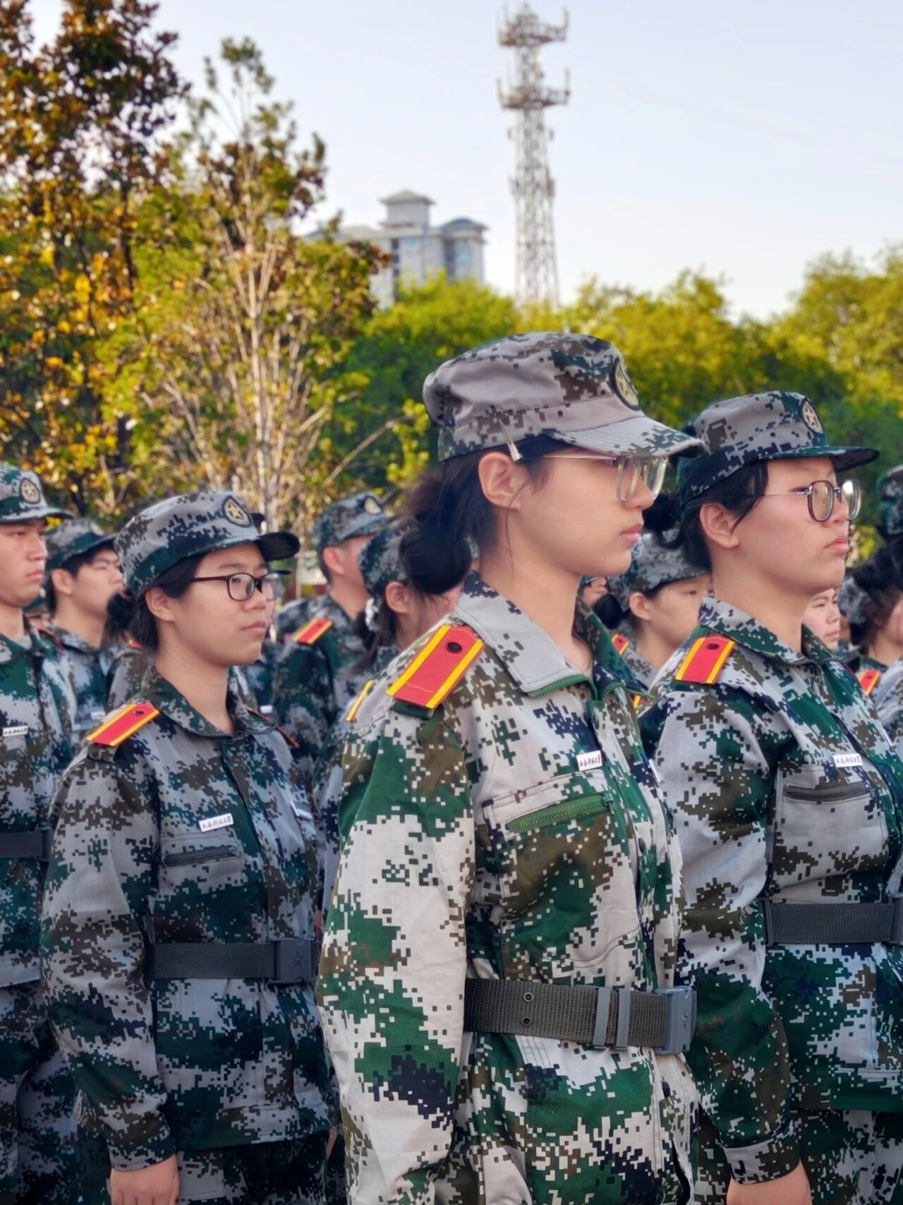 秋光漫洒训练场,风拂过迷彩衣角,带着青春的朝气与热血。 “站军姿” 这堂特殊的课程,恰似一把刻刀,细细雕琢着同学们的意志,也让同学们独有的坚韧,在阳光下愈发鲜明。
