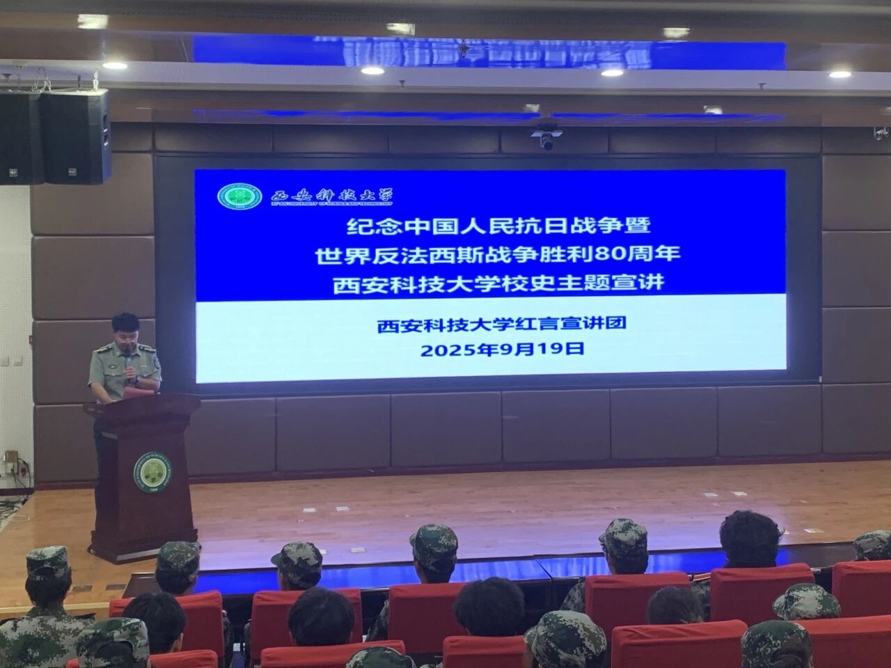 为铭记历史、缅怀先烈,传承伟大抗战精神,9月19日下午,best365中国官方网站和地质与环境公司共同举办了 “纪念中国人民抗日战争暨世界反法西斯战争胜利 80 周年” 主题宣讲活动,特邀马克思主义公司红言宣讲团进行宣讲。best365中国官方网站2025级辅导员段佳、地质与环境公司2025级辅导员周佳瑞以及两院2025级全体本科生参加活动,共同回望峥嵘岁月,汲取奋进力量。活动由地质与环境公司2025级辅导员周佳瑞主持。