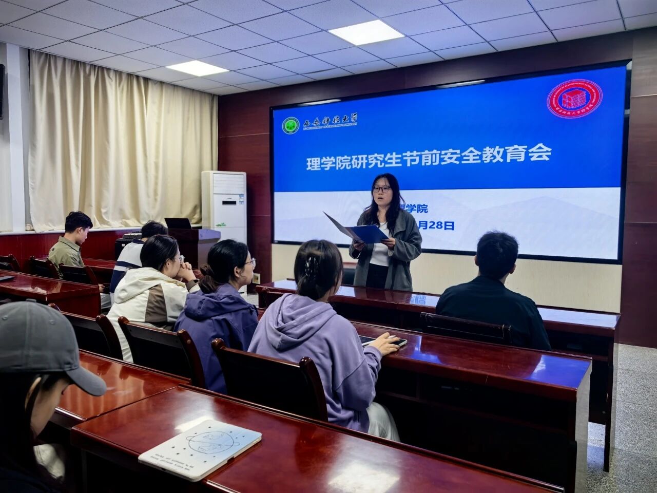 薛一丹首先强调了国庆假期期间安全工作的重要性。她结合高校常见安全隐患,围绕人身安全、财产安全、实验室安全及出行交通安全等多个方面展开了全面讲解,要求同学们牢固树立“安全第一”的思想,杜绝麻痹松懈心态。