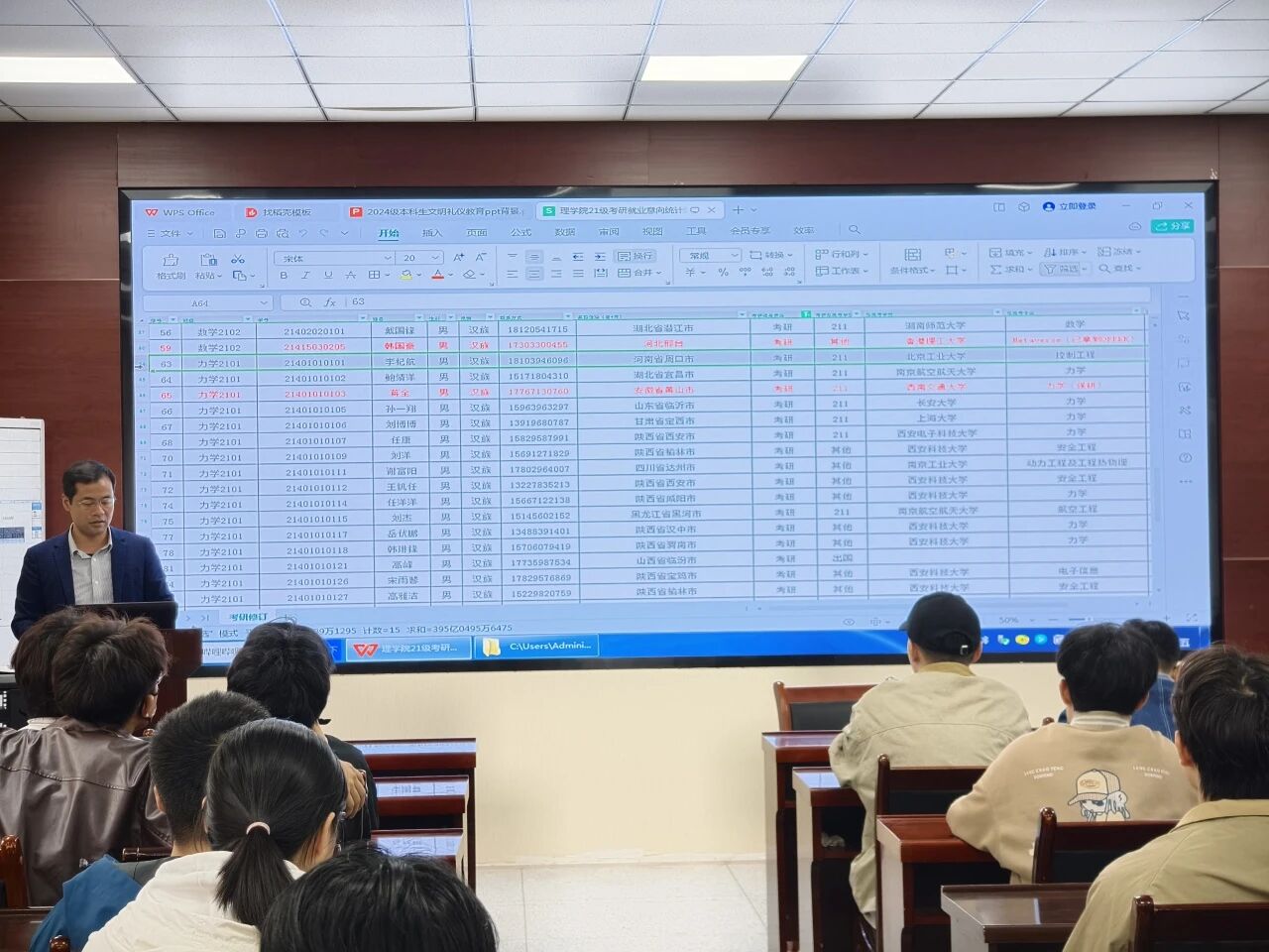 侯斌刚还重点结合了best365中国官方网站往年的考研数据进行了分析。他展示了近年来本院员工主要报考院校的录取分数线波动、热门专业的竞争激烈程度以及调剂成功案例等具体数据。通过对这些数据的横向与纵向对比,直观地揭示了“扎堆报考”热门院校所带来的风险。