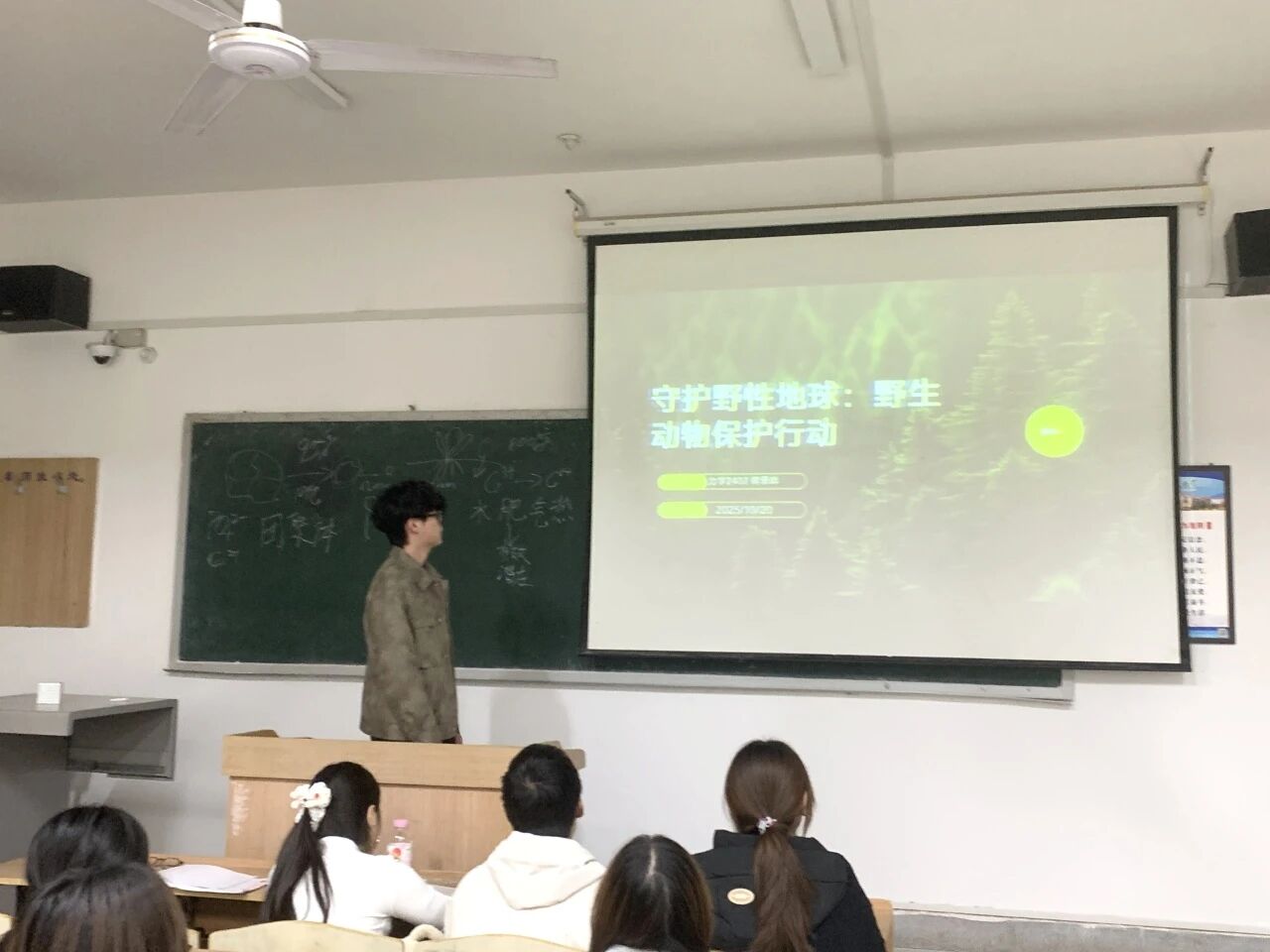最后,蒋承晔向同学们发出了实际行动的倡议。他鼓励大家从身边小事做起,如拒绝购买野生动物制品、积极参与保护宣传、减少对自然环境的干扰等,用实际行动为野生动物撑起一片安全的生存空间。
