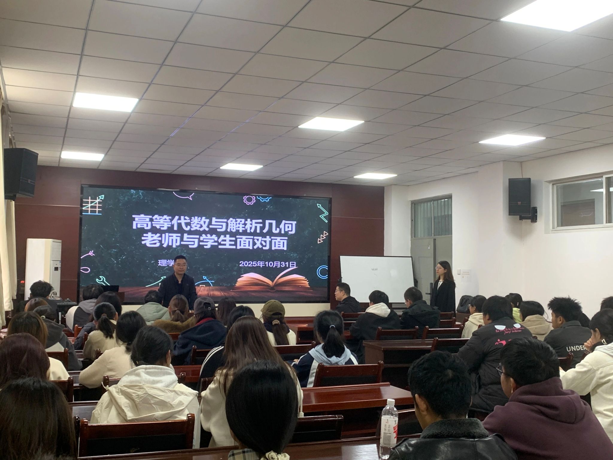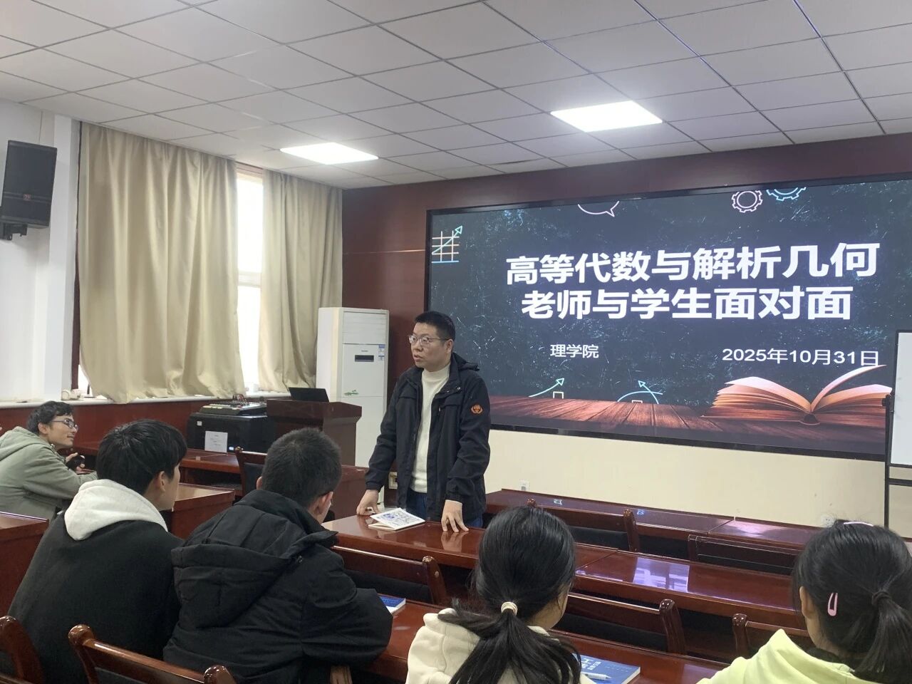 互动环节中,同学们踊跃发言,提出了诸多针对性问题。有的困惑于矩阵运算的复杂逻辑,有的对空间解析几何定理的应用把握不准,还有同学反映在知识点串联整合方面存在困难。王健康耐心细致地逐一解答,结合具体例题,从定理推导到解题思路层层剖析,帮助同学们理清知识脉络。对共性问题,他还通过板书演示,让抽象知识变得通俗易懂。