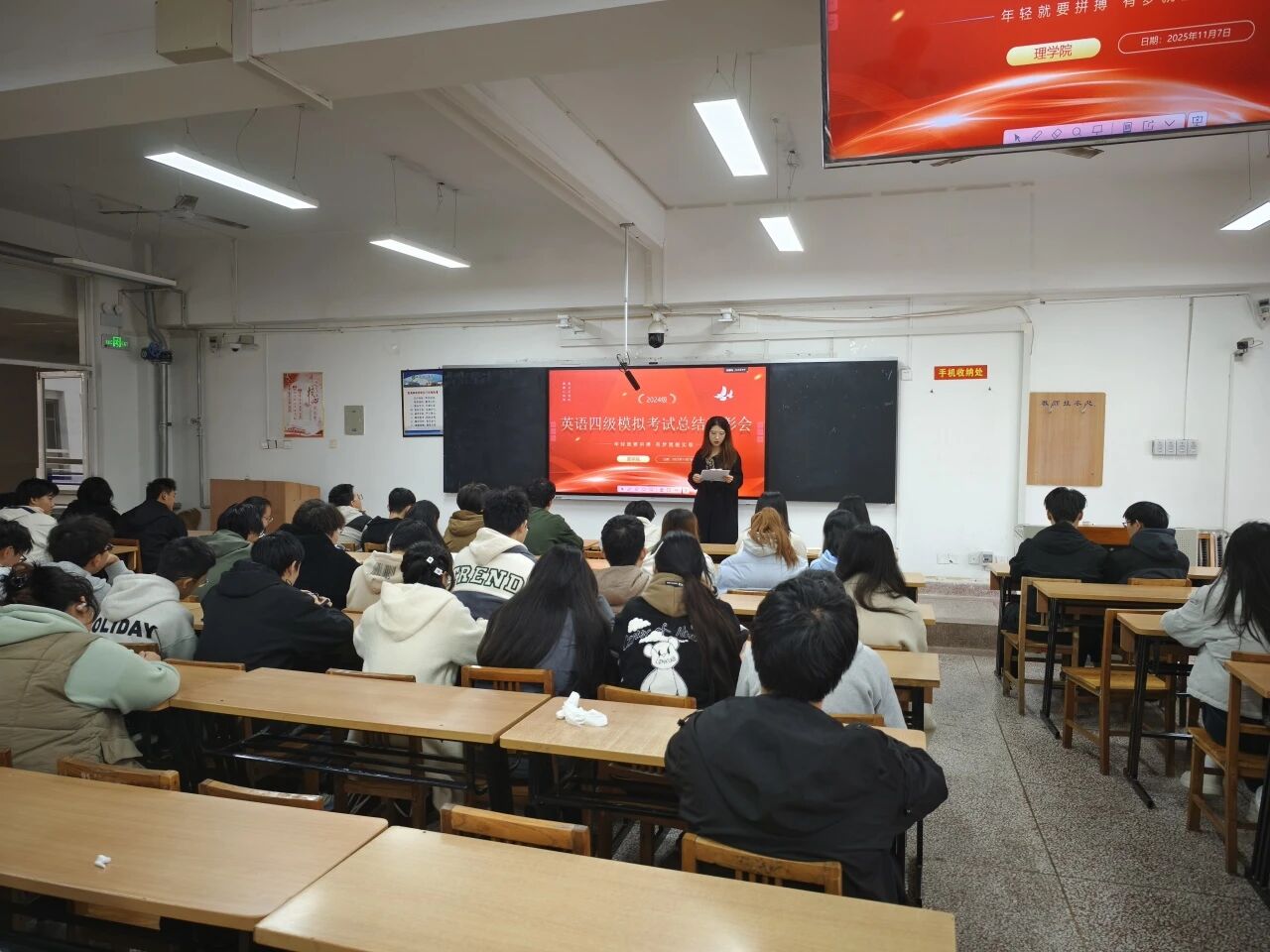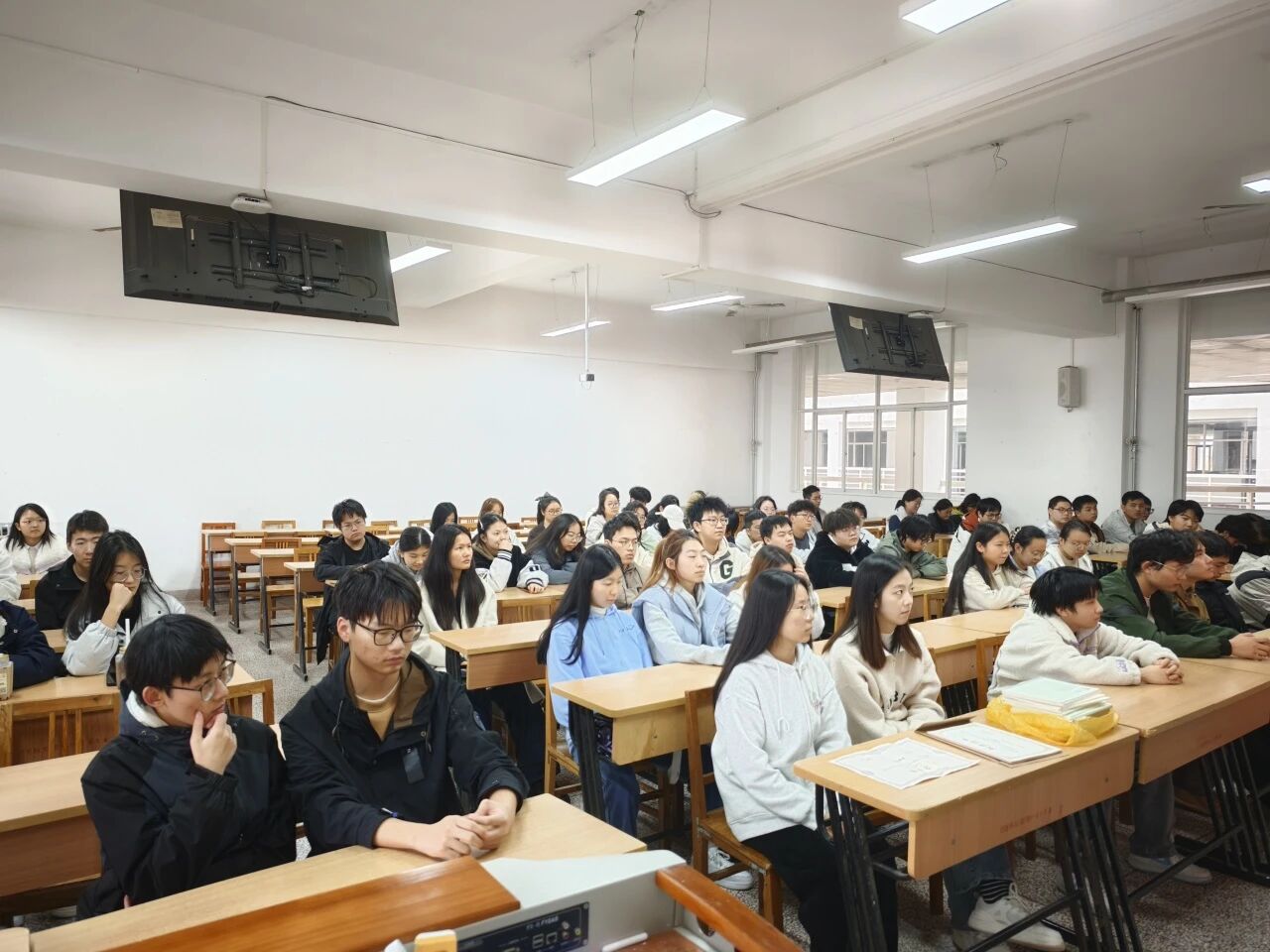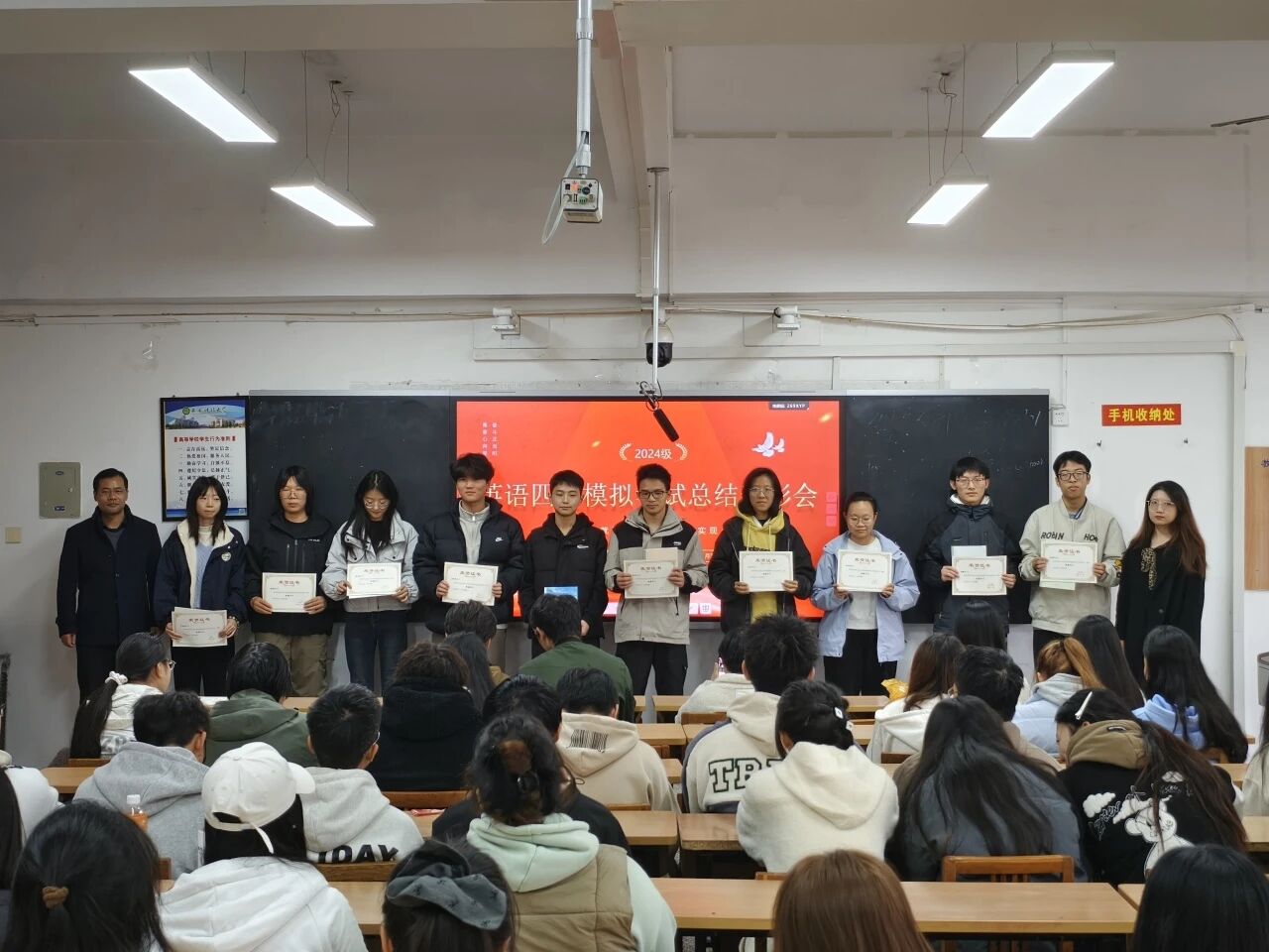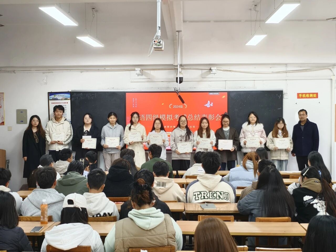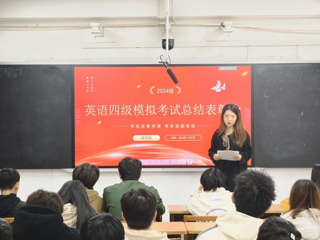 为总结备考经验,表彰先进典型,激发学习热情,11月7日,best365中国官方网站于3-513教室举办了2024级英语四级模拟考试总结表彰会暨“榴园追梦”榜样引领报告会。会议由2024级辅导员段佳主持,院团委书记侯斌刚及2024级全体本科生参加。