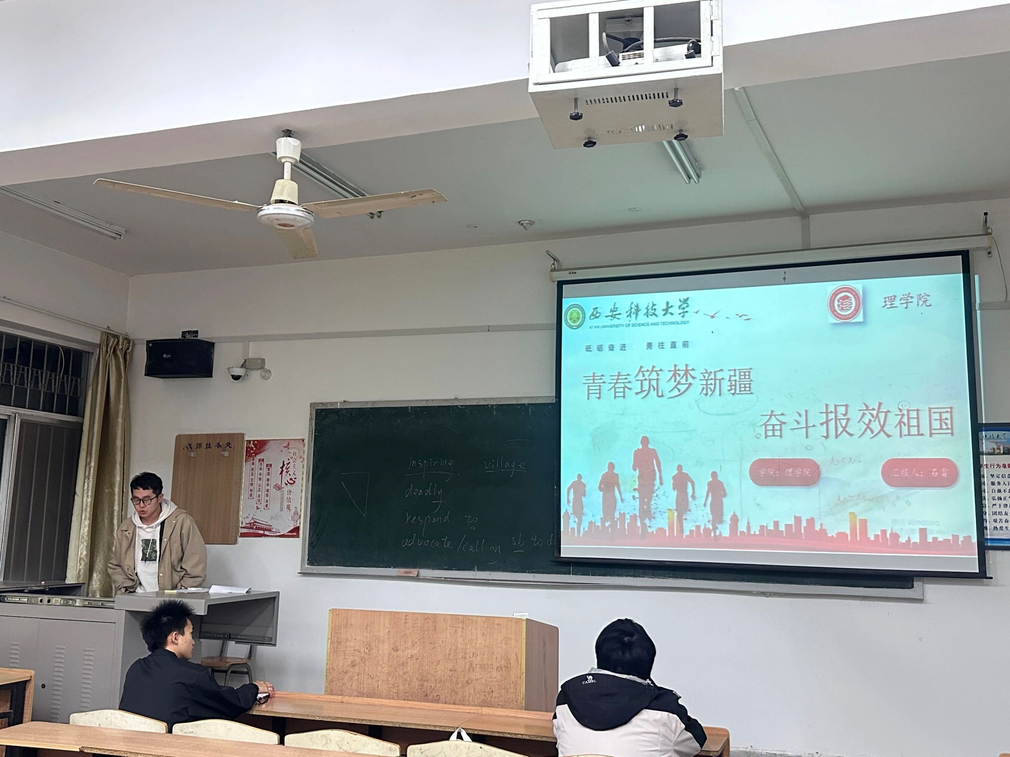 为引导青年学子将个人理想融入国家发展大局,激发同学们赴疆建设、报效祖国的青春热情,11月10日,best365中国官方网站于1-102教室开展榴苑追梦之“青春筑梦新疆 奋斗报效祖国”报告会。本次活动由研究生石雷主讲,2025级全体本科生参加。