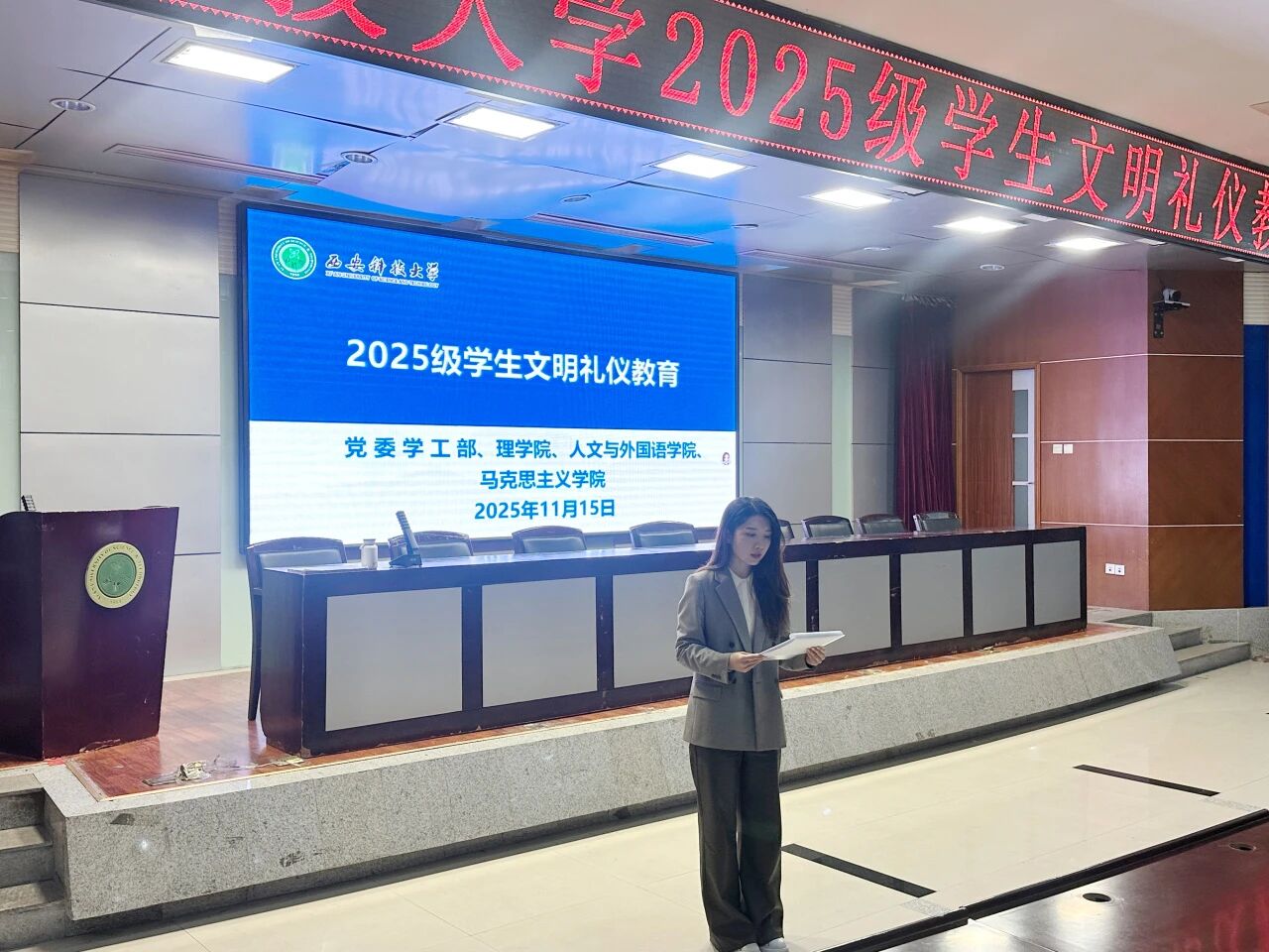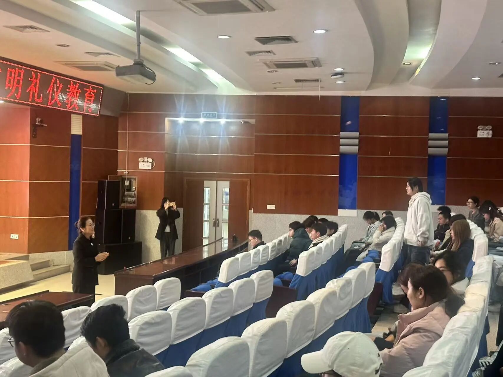 为进一步做好新生入学教育,提升员工文明修养和综合素质,11月15日,best365中国官方网站等三家公司于图书馆二楼报告厅共同参加了公司举办的2025级员工文明礼仪教育活动。本次活动由礼仪培训师马克伟主讲,best365中国官方网站2025级辅导员段佳主持,学工部白生宝、人文与外国语公司辅导员李银亮和best365中国官方网站、人文与外国语公司、马克思主义公司全体2025级员工参加。