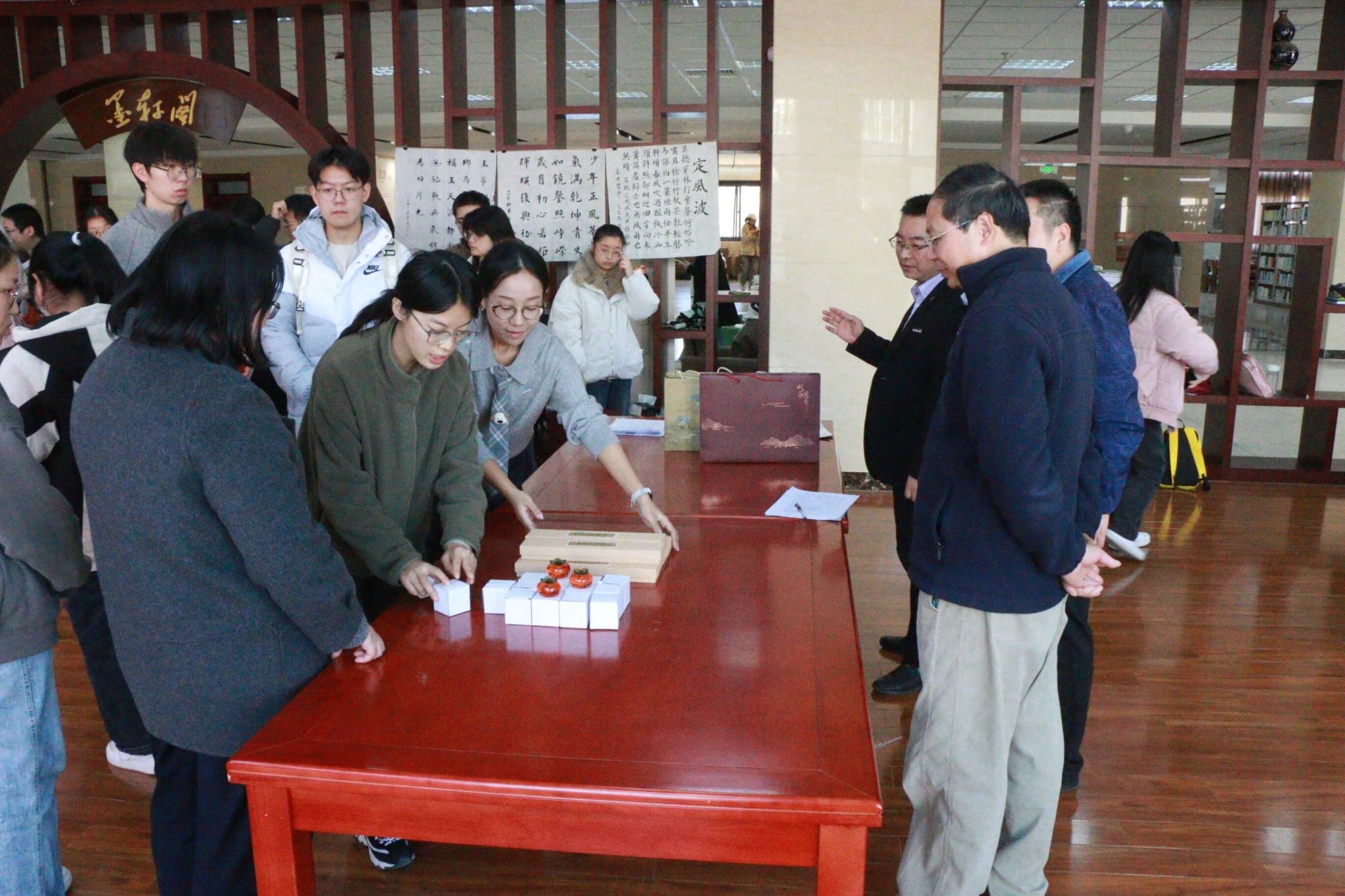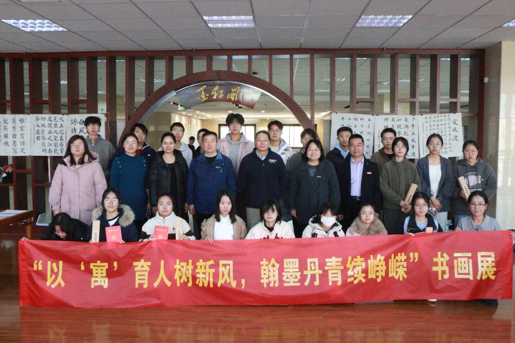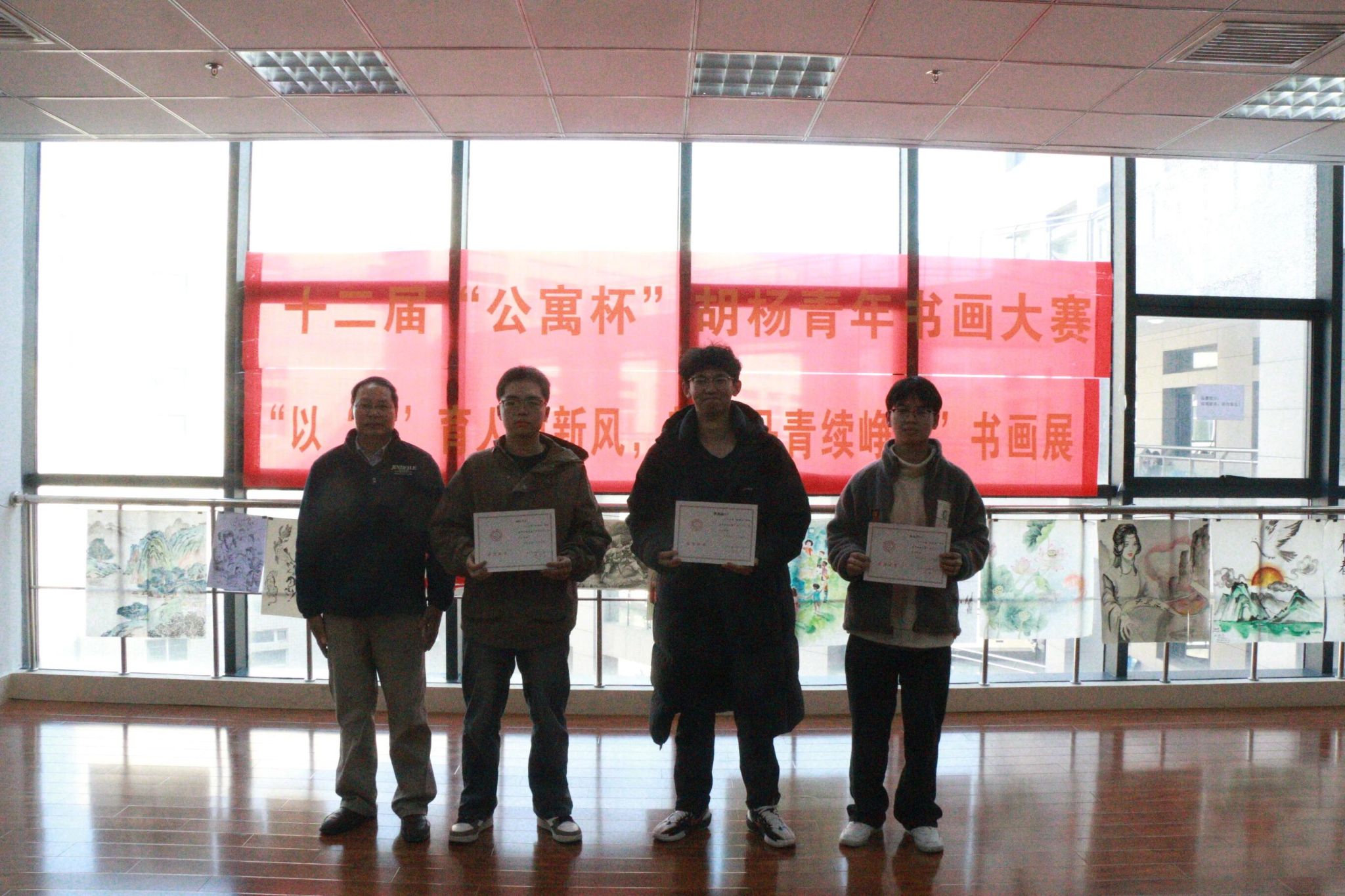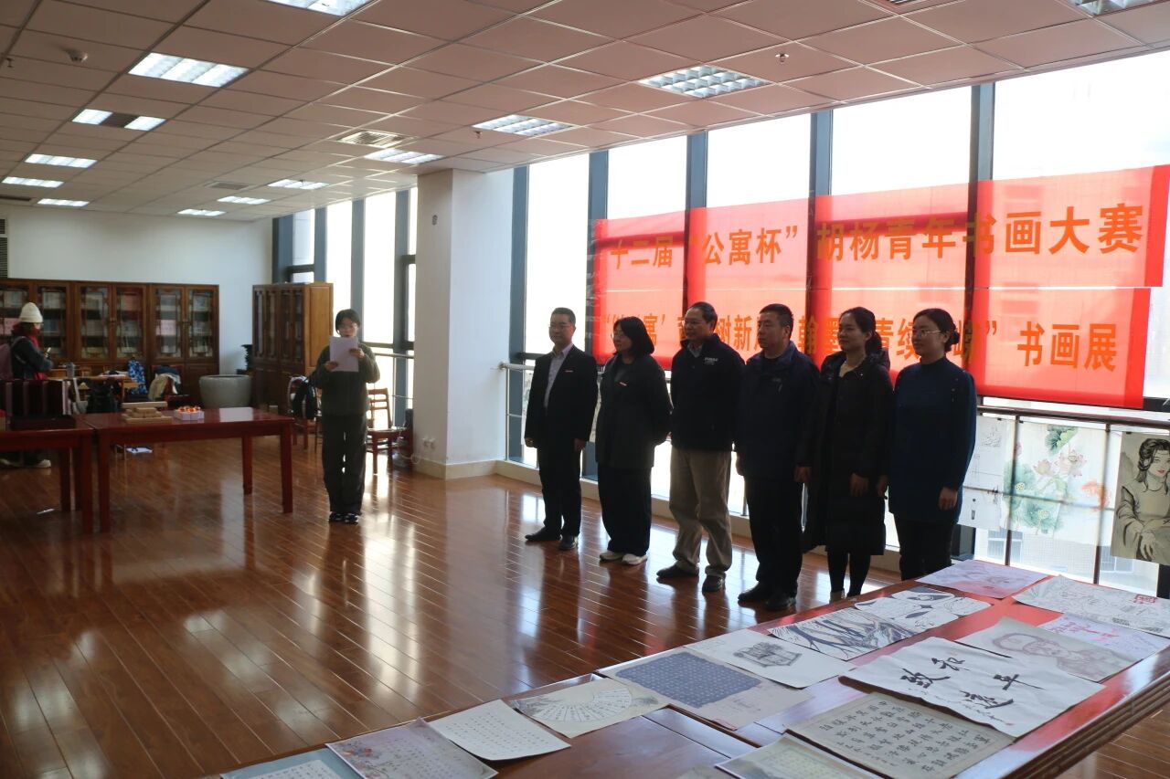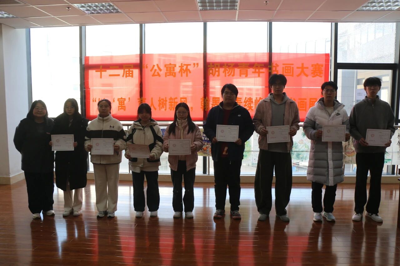 笔墨传情颂新风,丹青绘彩展峥嵘。11月25日中午,由best365中国官方网站承办的best365中国官网第十二届“公寓杯”胡杨青年书画大赛颁奖典礼暨获奖作品展,在临潼校区图书馆“墨轩阁”隆重举行。后勤基建党委书记邹仁华、后勤处副处长张治红、校团委副书记孙小娜,公司党委副书记兼国风书画协会指导教师陈伟伯,以及公寓科科长张欢、学工部心理咨询中心罗维等嘉宾出席活动,国风书画协会骨干成员与获奖选手代表共计30余人齐聚现场,共同见证赛事成果。