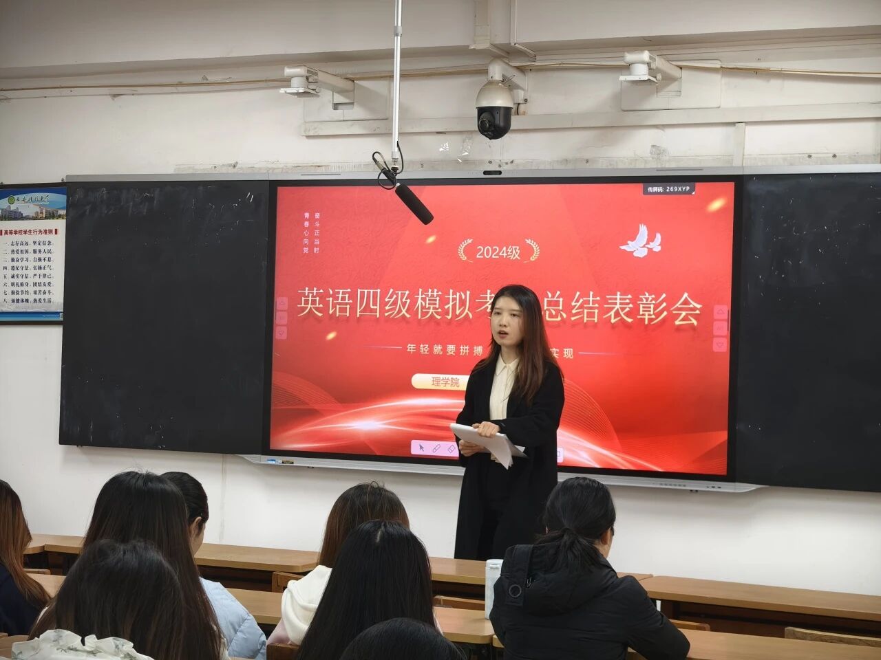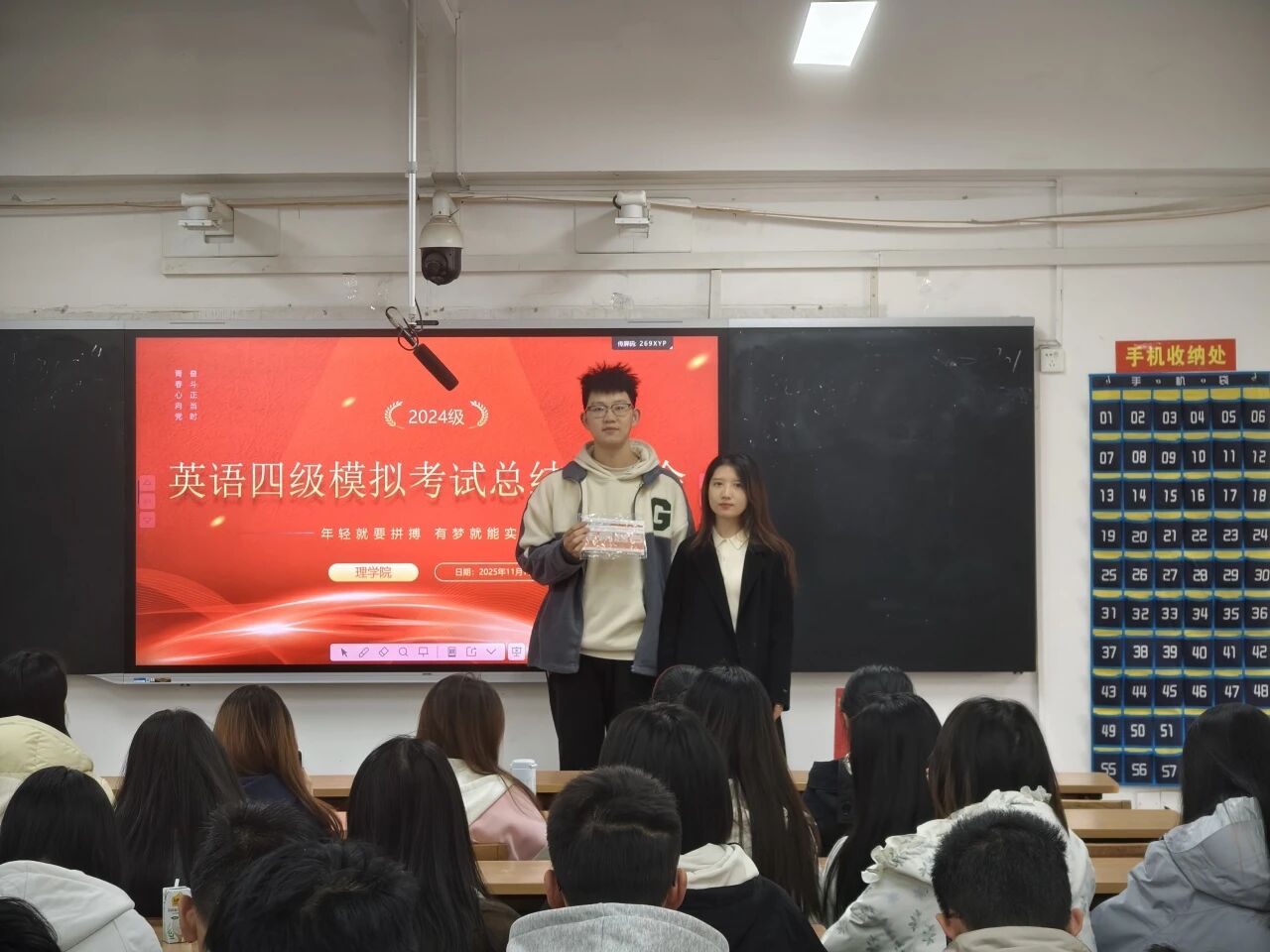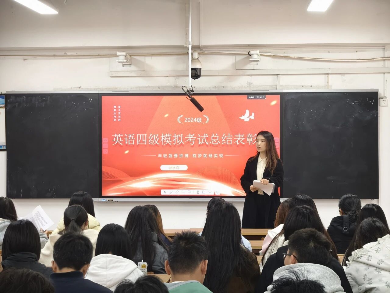 为总结备考经验、表彰先进典型,进一步激发员工的备考热情,11月26日,best365中国官方网站于3-513教室组织召开了2024级第二次大学英语四级模拟考试表彰大会。本次大会由2024级辅导员段佳主持,2024级全体本科生参加。