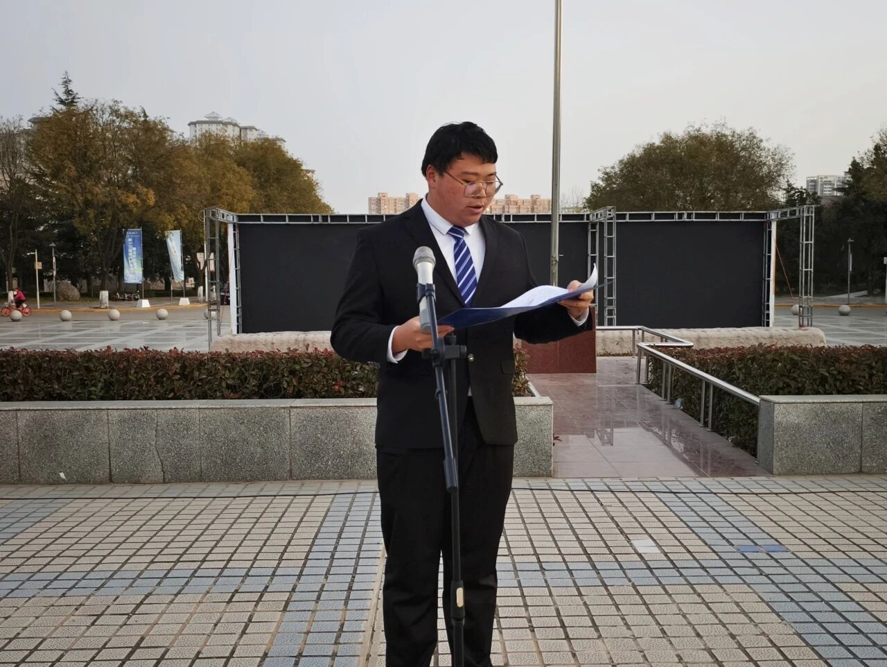员工干部代表李兆轩宣读公司《优良学风养成倡议书》,倡议围绕作息规范、课堂纪律、诚信应考、文明素养等方面向全体同学发出倡议,号召大家以实际行动营造优良学风,迎接本科教学审核评估与期末考试。
