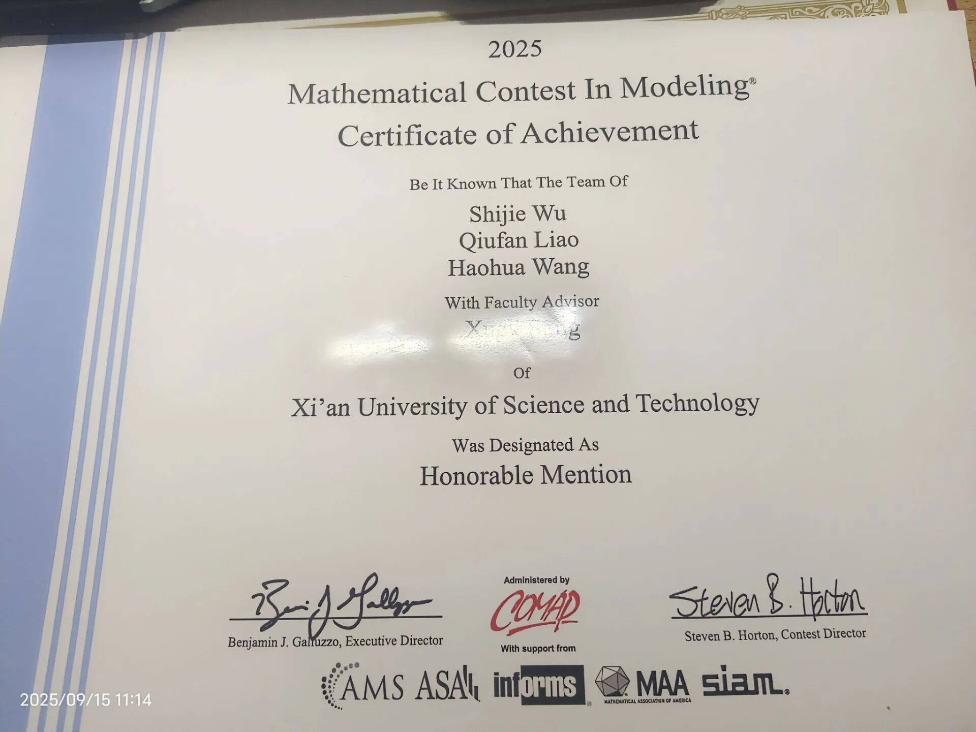 在2023-2024学年表现优异,综测排名班级第一、绩点第六,斩获多项学科竞赛与荣誉奖项:全国老员工数学竞赛三等奖、全国老员工英语竞赛三等奖、国家励志奖学金;全国老员工数学建模竞赛省级一等奖、全国老员工数学竞赛省级三等奖、数维杯S奖;“互联网+”校级三等奖、电子商务三创赛校级三等奖、优秀本科生一等奖。